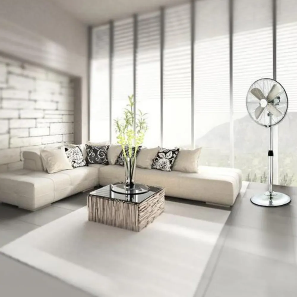 Denne maks. 115 cm høje, skinnende forkromede gulvventilator er meget foranderlig og dens rotorblade består af rustfrit stål. I alt medfølger tre forskellige holdere. Alt efter valg kan Silver Stream dermed anvendes som gulvventilator på gulvet hhv. på et bord eller som vægventilator. Silver Stream kan indstilles på tre hastigheder og kan endda dreje.
