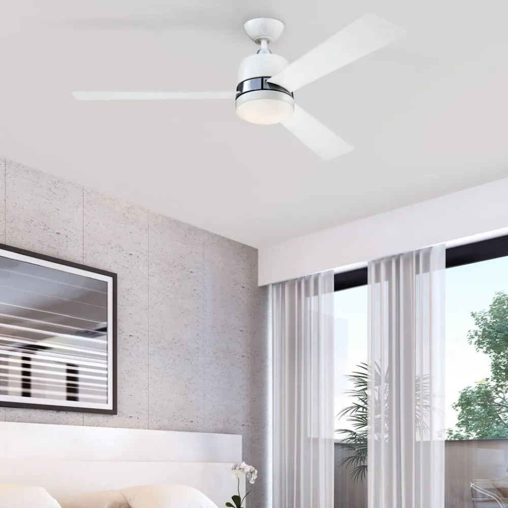 Tristan loftventilator med fjernbetjening, belysning og tre vendbare blade i hvid og lys ahorn