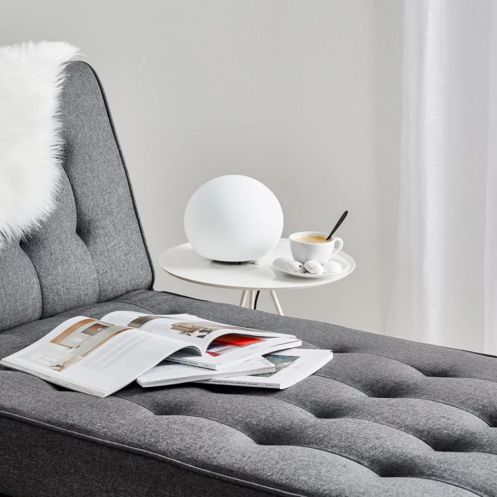 Sfærisk Dro-bordlampe – en klar accentlyskilde Dro-bordlampen har et dekorativt mundblæst lampeglas, der hviler på små sorte fødder, som sikrer lysfordeling hele vejen rundt. Uanset hvor Dro-bordlampen placeres – i vindueskarmen i stuen, på en kommode i soveværelset eller på natbordet – skaber den en lys, stemningsfuld accent, uanset hvor den placeres. Det sorte tekstilkabel er udstyret med en lysdæmperkontakt, som kan bruges til at dæmpe belysningen efter behov og tilpasse den til individuelle behov.
