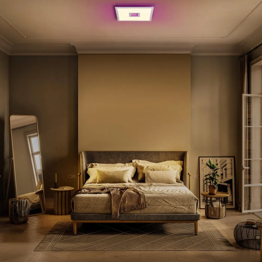 Firkantet, ekstra flad Planon Plus Hole Backlight overflademonteret LED-panel med LEDVANCE SMART+ WiFi-teknologi Med sit firkantede design, som kendetegner både den ydre ramme og en central fordybning, er LED-loftlampen Planon Plus Hole Backlight det perfekte valg til moderne interiør. Panelet er også funktionelt up-to-date. Det har LEDVANCE SMART+ WiFi-teknologi, som muliggør tilslutning til en smartphone/tablet eller smart integration via WLAN. Planon Plus Hole Backlight giver direkte belysning og oplyser også loftet; disse kan styres separat med hensyn til lysstyrke, farvetemperatur og farvetone. For eksempel kan effektiv rumbelysning i varmhvid til dagslys lysfarve og farverige lysaccenter i loftet implementeres samtidigt. Tekniske data / kompatibilitet: – Kan styres via gratis LEDVANCE SMART+ WiFi-app (med mindst Android 4.4 eller iOS 9.0); muliggør forudindstillinger og automatisering – Stemmestyring via Google Assistant eller Amazon Alexa mulig – RGB og farvetemperatur justerbar: 2.700 K – 6.500 K – Dæmpbar – Netværksprotokol: WiFi