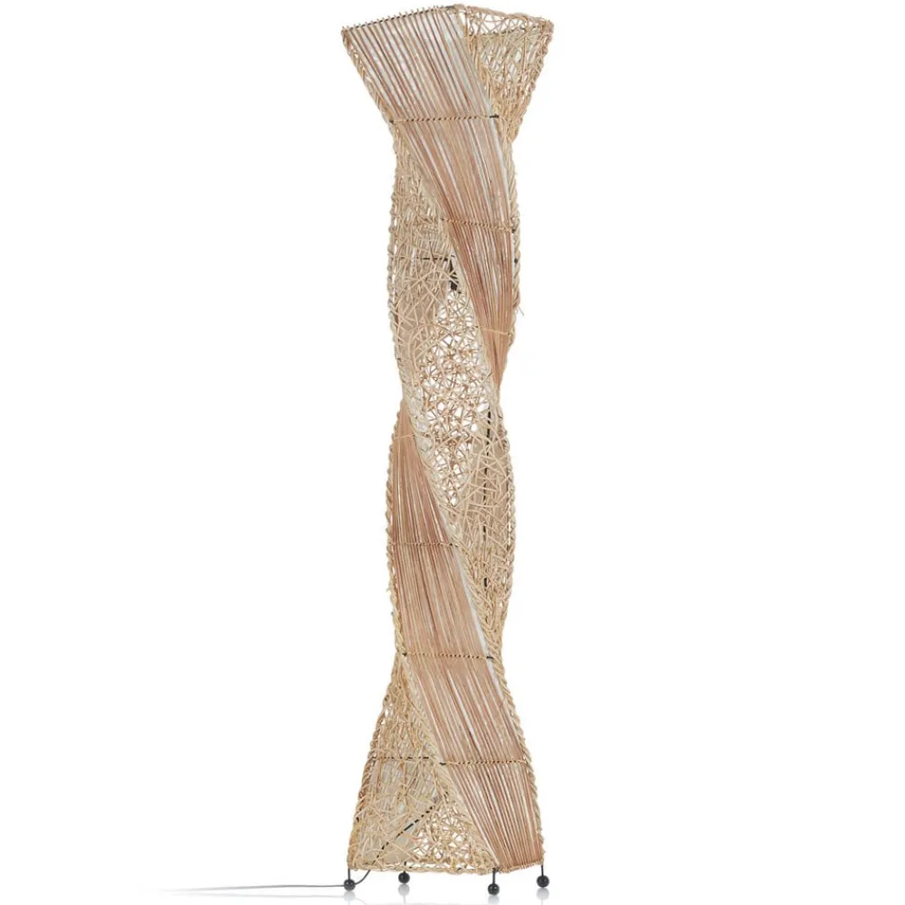 Snoet, vævet MARCO gulvlampe lavet af naturlige materialer Lys rattan og panicles af bananblade er blevet vævet i en snoet form, hvilket giver MARCO gulvlampen sit helt særlige præg. Lyset skinner gennem de forskellige materialer på en flot måde og fremhæver den usædvanlige form. MARCO er også yderst dekorativ, når den er slukket. Gulvlampen kan tændes og slukkes ved hjælp af en vippekontakt. Det er kun den større version af gulvlampen, der stadig er tilgængelig.