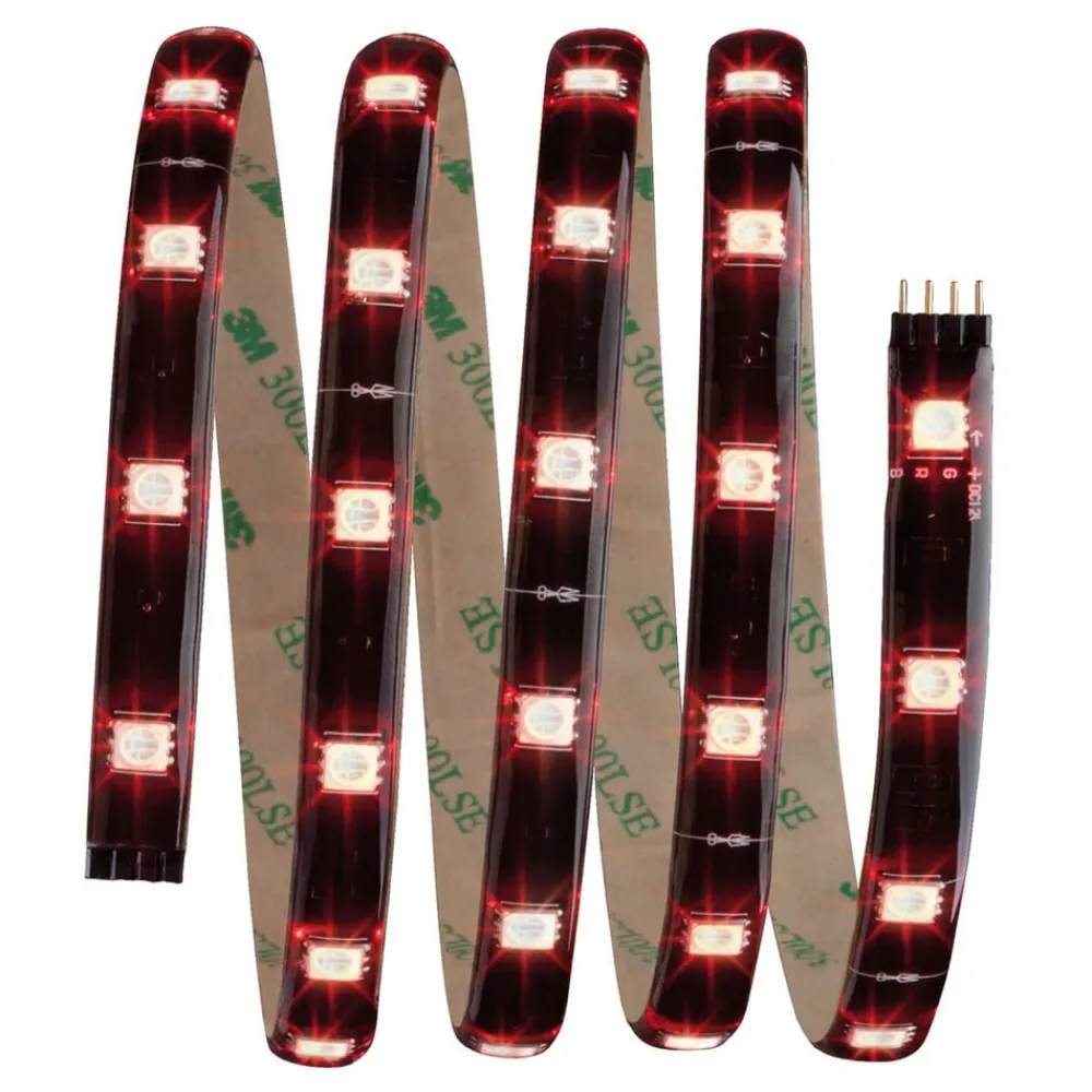 Strimlerne kan fastgøres meget let takket være klæbende bagside og plug-in system. De kan afkortes og forlænges til en samlet længde på 2,5 m. LED-strimlen er lavet af sort plastik og har en gennemsigtig belægning, der beskytter lysdioderne mod kontakt og fugt. Det fleksible materiale er velegnet til installation på flade eller buede overflader.