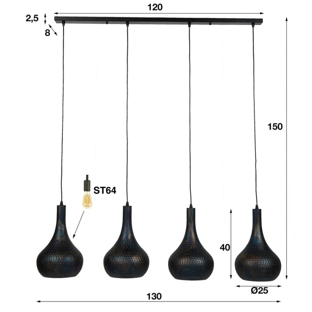 Hængelampe Bombur 4 lyskilder sortbrun