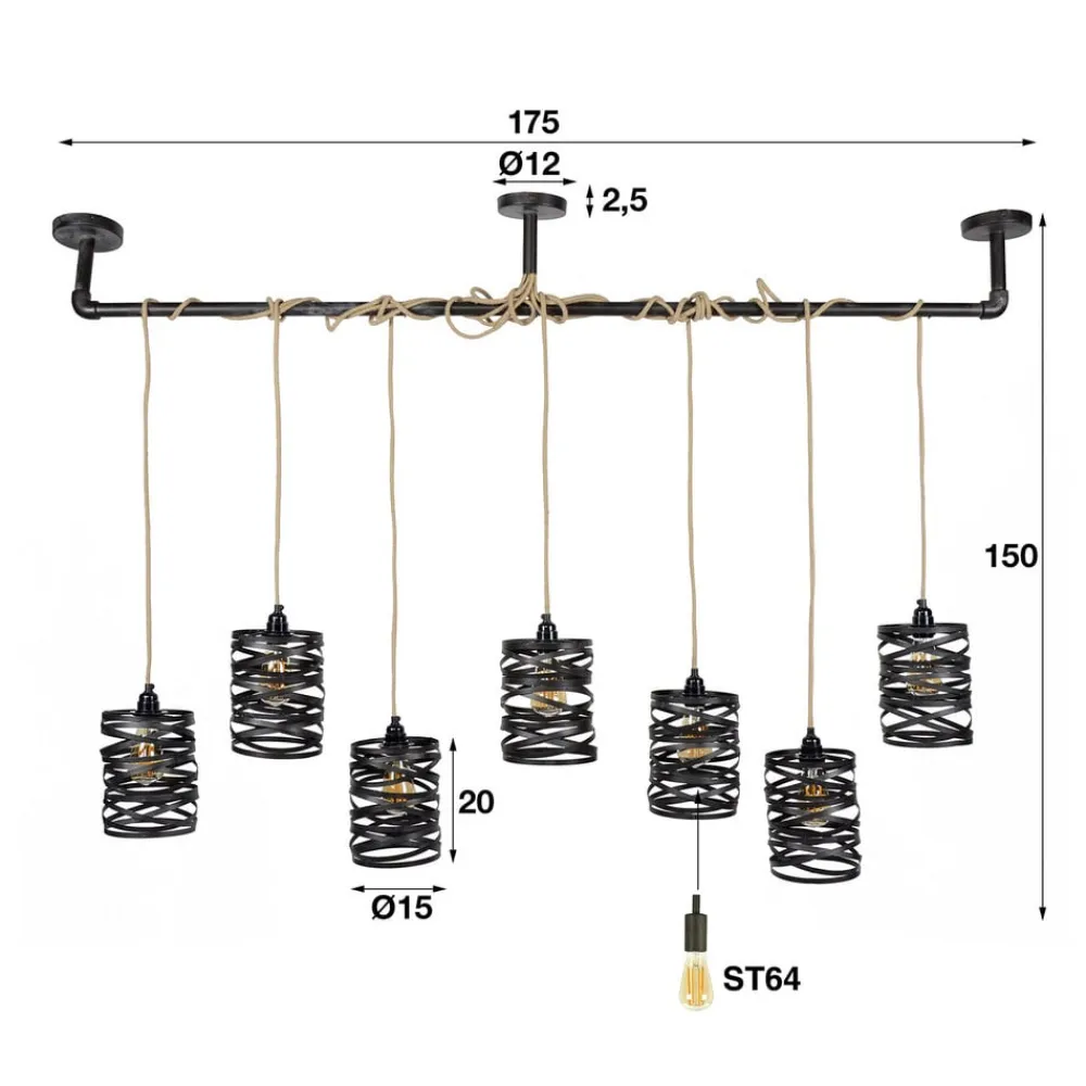 Crossround-pendel med 7 spiralformede skærme