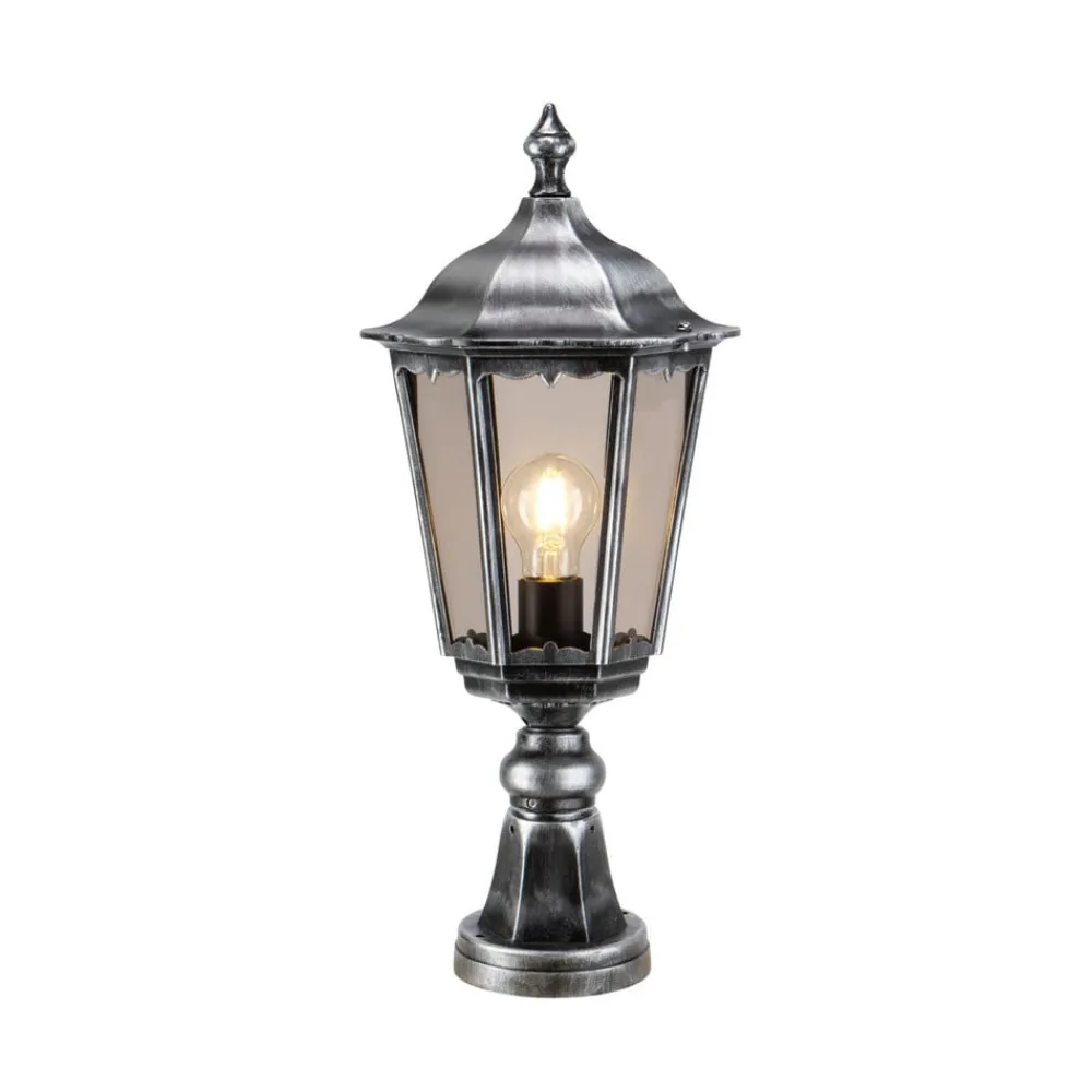 1112 sokkellampe af trykstøbt alu, sort-sølv