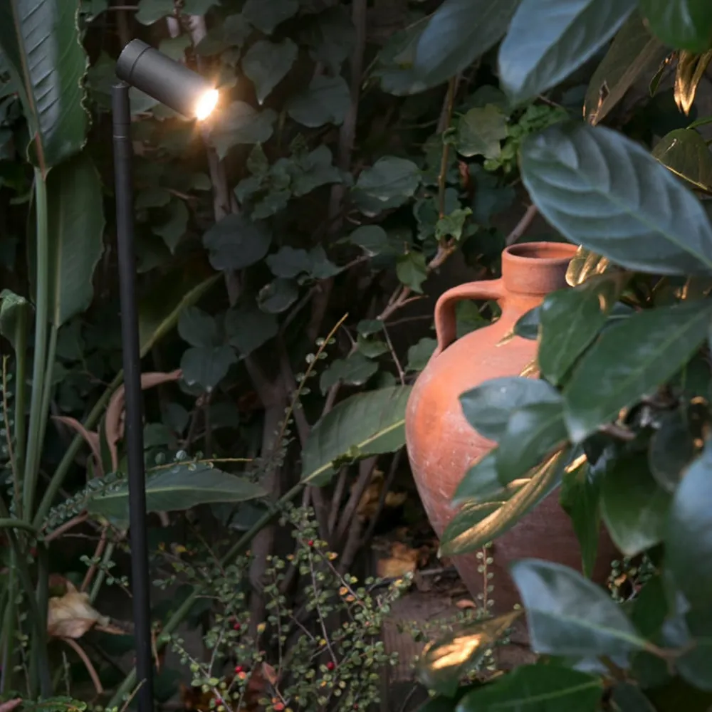 Denne LED-lampe omfatter fra start et jordspyd som en del af designkonceptet, og det åbner op for et bredt spektrum af installationsmuligheder for Seth-60. Jordspyddet sørger her for en god stabilitet, selv i sand- eller lerholdig jord. Det slanke spot med jordspyd imponerer med sit diskrete look og den lange fod. På grund af kapslingsfaktor IP44 er spottet Seth-60 modstandsdygtigt over for stænkvand og indtrængen af støv. Udendørslampen kan justeres fleksibelt efter behov for at fremhæve bestemte genstande.