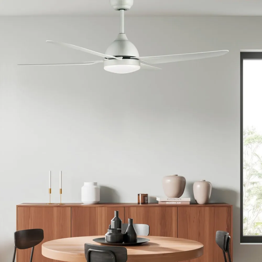 Der er seks hastighedstrin at vælge imellem til ventilatoren, og der kan også vælges en returfunktion. Sidstnævnte hjælper om vinteren med at fordele den varme luft fra varmeanlægget optimalt i rummet via loftet og kan dermed bidrage til at spare på energiforbruget.