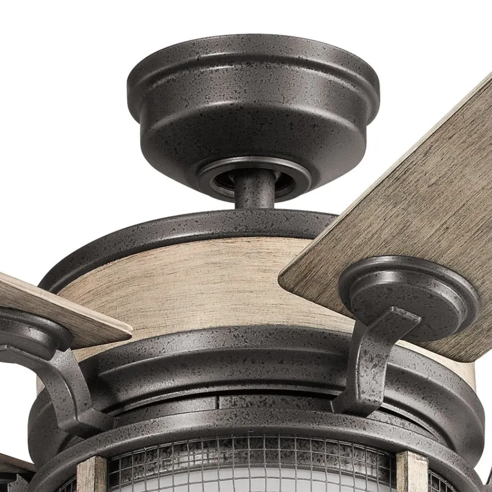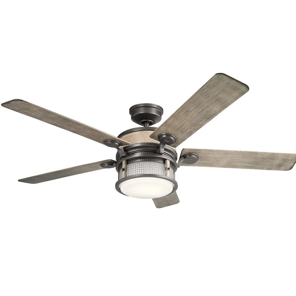 LED-loftventilatoren Ahrendale er udstyret med et stålhus med en amboltjernsfinish samt blade af ABS plast med et forvitret antikgråt look og fanger med industriel charme. Der er integreret en trinløst dæmpbar LED-belysning, og en fjernbetjening er allerede inkluderet i leveringen.