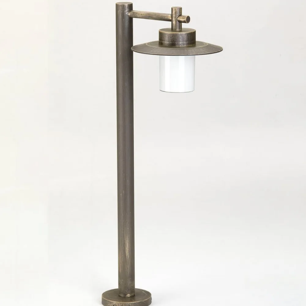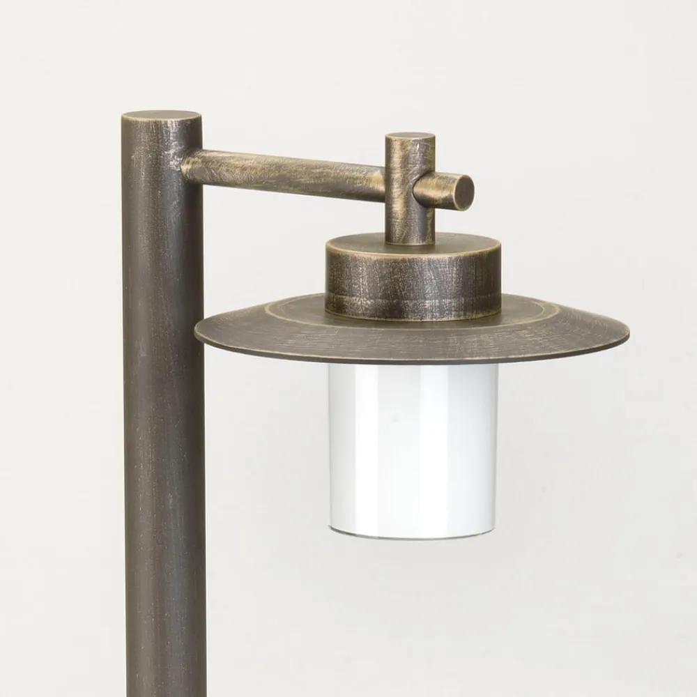 En moderne fortolkning af landlig stil – Fiona stibelysning Fiona stibelysning, fremstillet i Tyskland af støbt aluminium og glas, præsenterer sig i ligefremme og klare former. Metaloverfladen har en brun-messingfarvet finish, hvilket gør det enkelt designede armatur perfekt til brug i landlige omgivelser. Ud over glødelamper kan stibelysningen monteres med alle andre typer lyskilder med E27-sokkel. Hvis man bruger en moderne og effektiv LED-lampe, bliver udendørsområdet oplyst på en meget energibesparende måde. LED-lamper er også kendetegnet ved en meget lang levetid.