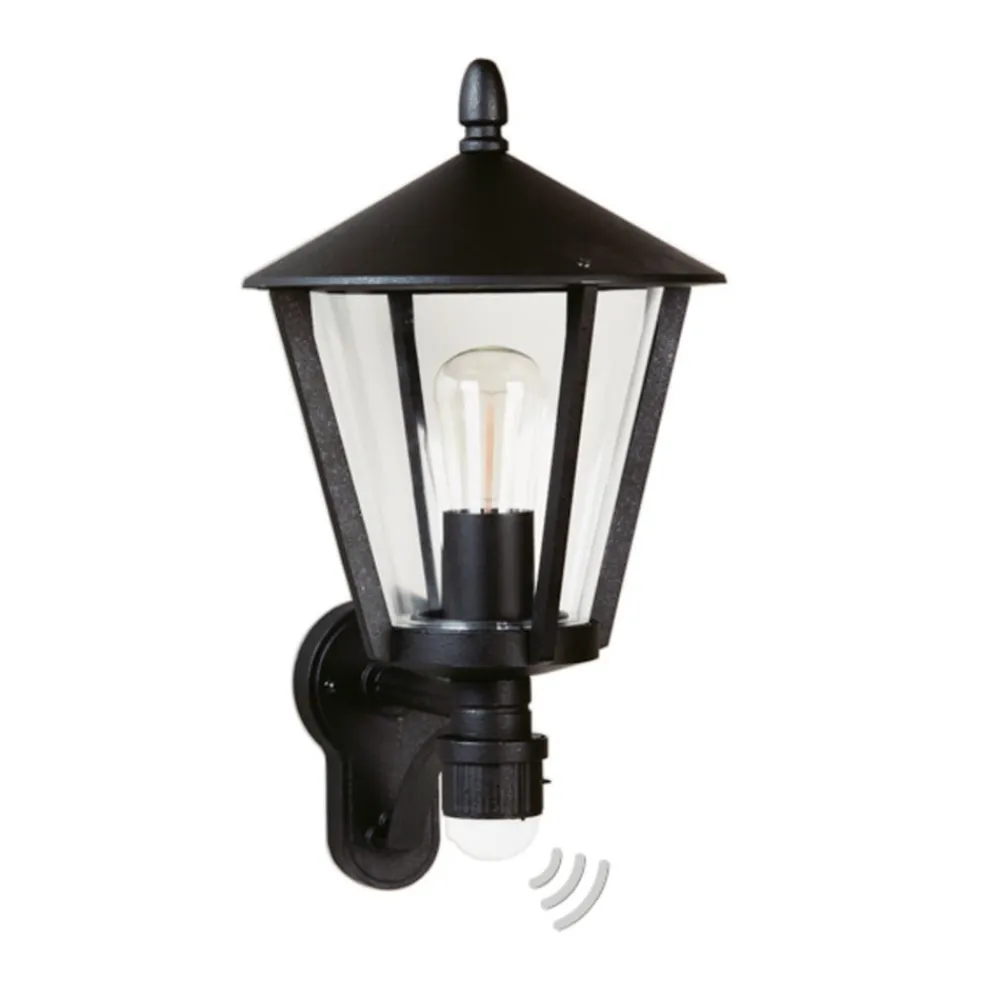 Udendørs væglampe 671, sort med bevægelsesdetektor