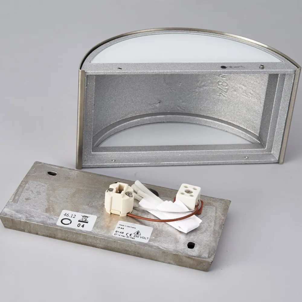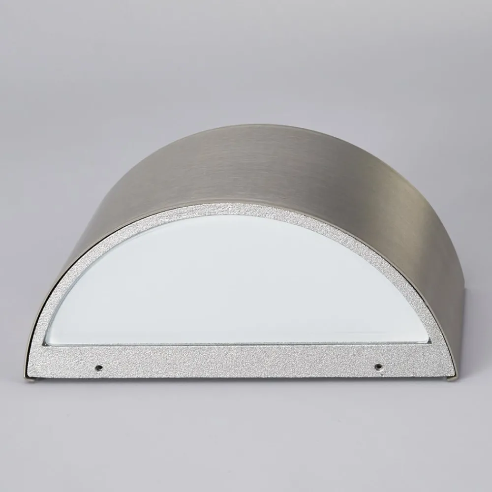 Udendørs væglampe Mombasa er en optimal natlampe til huset. Den består af en halvrund ring af stål og afgiver lyset opad og nedad. Den oplyser omgivelserne indirekte ved at belyse husets facade. Der opstår elegante lyskoner. Stålrammen beskytter mod blænding. Mombasa kræver kun én pære og kan ved brug af en sparepære drives hele natten uden store omkostninger. Derfor er lampen meget velegnet til montering over et husnummer. Det nedadrettede lys gør det synligt hele natten igennem. Designet er diskret og tidløst. Det pryder især nybyggeri. Tysk kvalitetslampe.