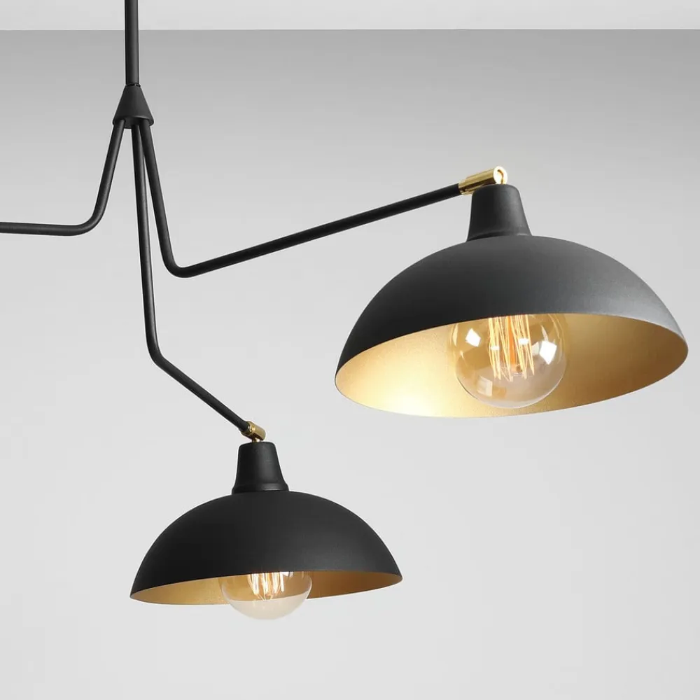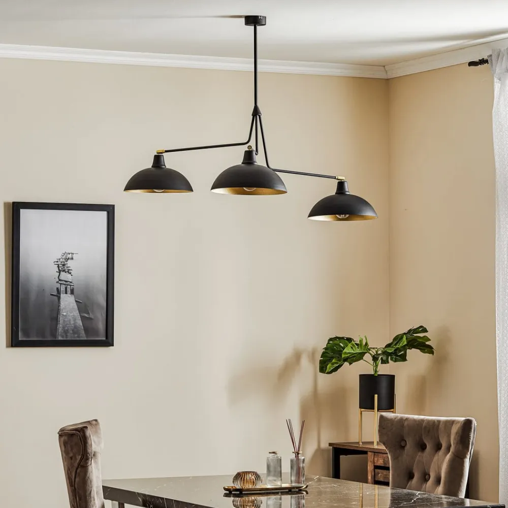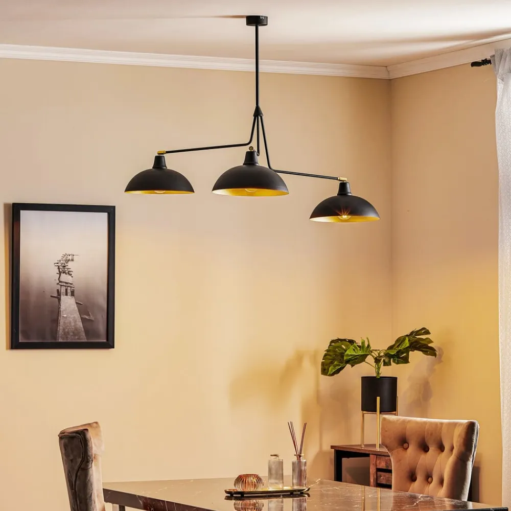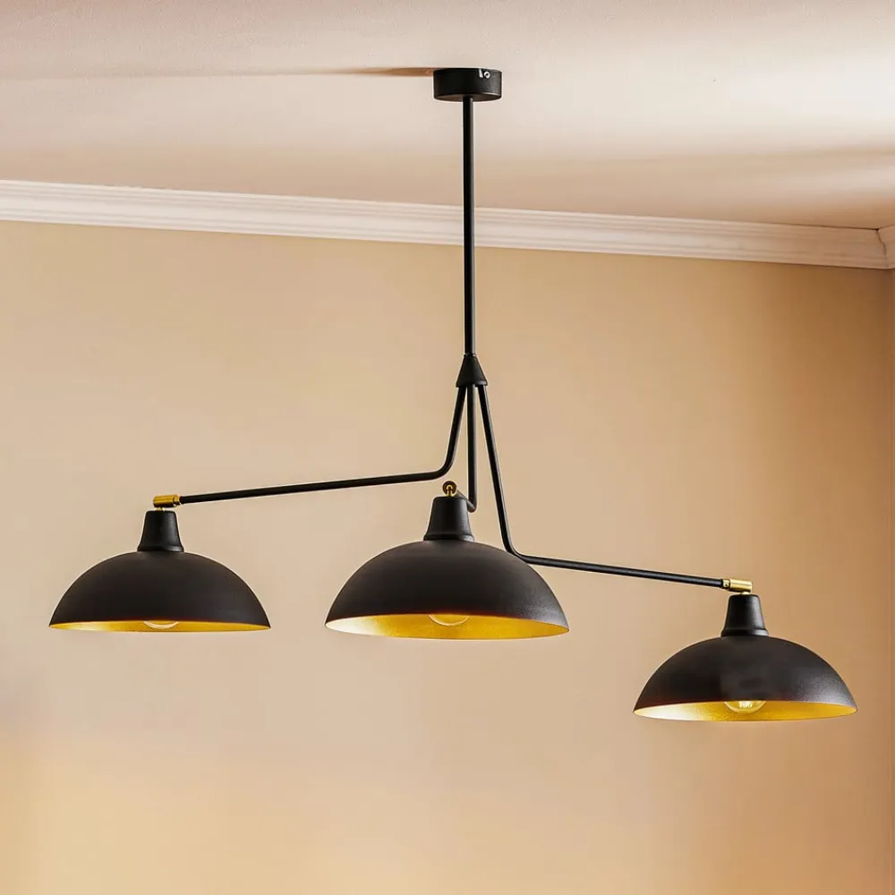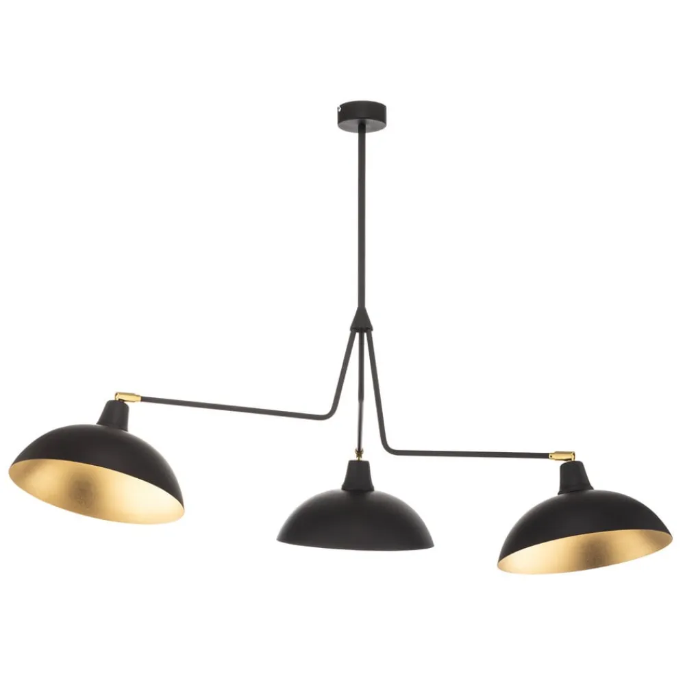 Hængelampe 1036, 3 lyskilder, sort-gylden