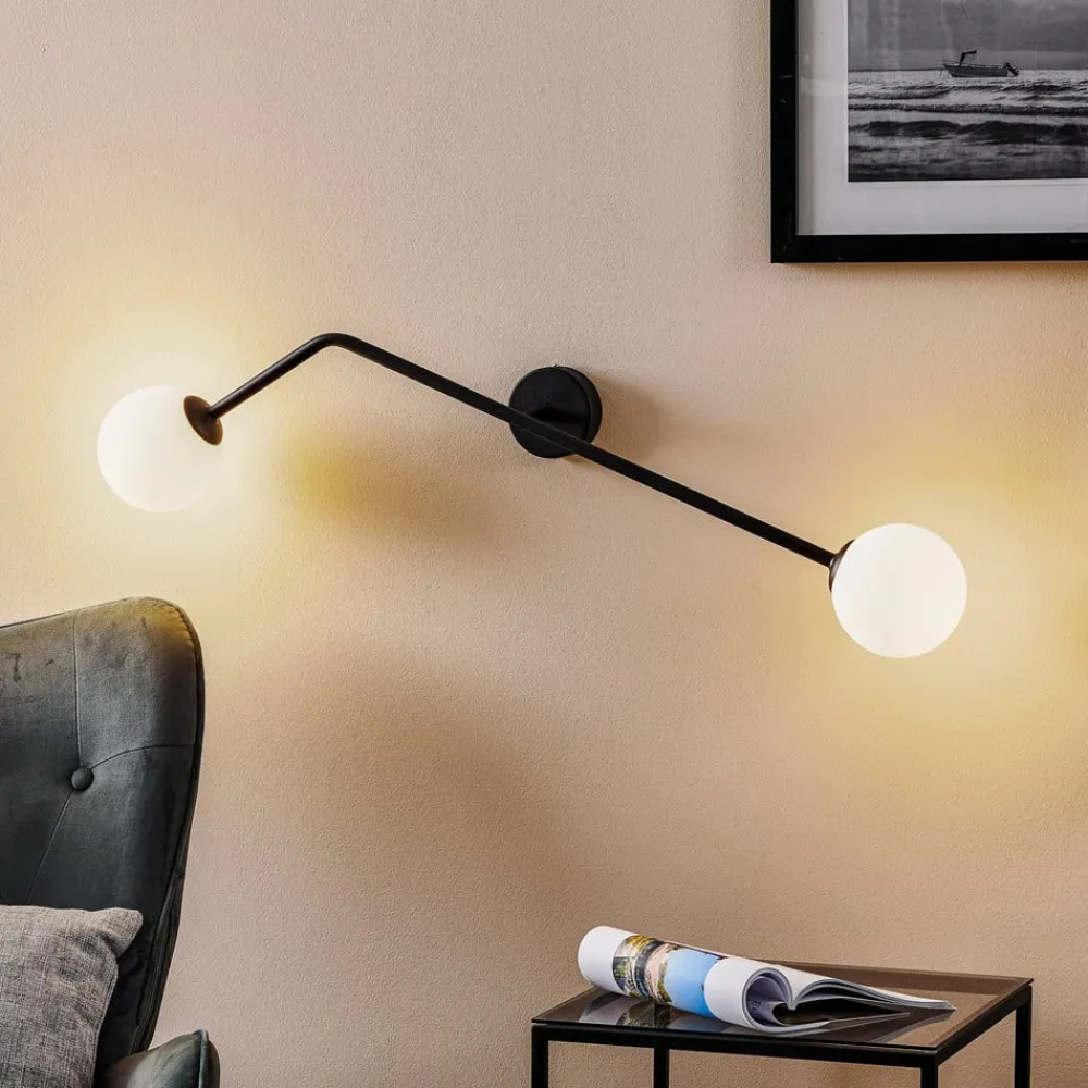 Væglampe Pure kombinerer moderne design med funktionel belysning. Den er fremstillet af højkvalitetsmetal og frostet glas og er et stilfuldt supplement til stuen, soveværelset og spisestuen. Konstruktionen med 2 lyskilder sikrer en jævn lysfordeling, der skaber en hyggelig og inspirerende atmosfære. Den elegante kombination af sort metal og hvidt frostet glas giver ethvert rum en tidløs æstetik.
