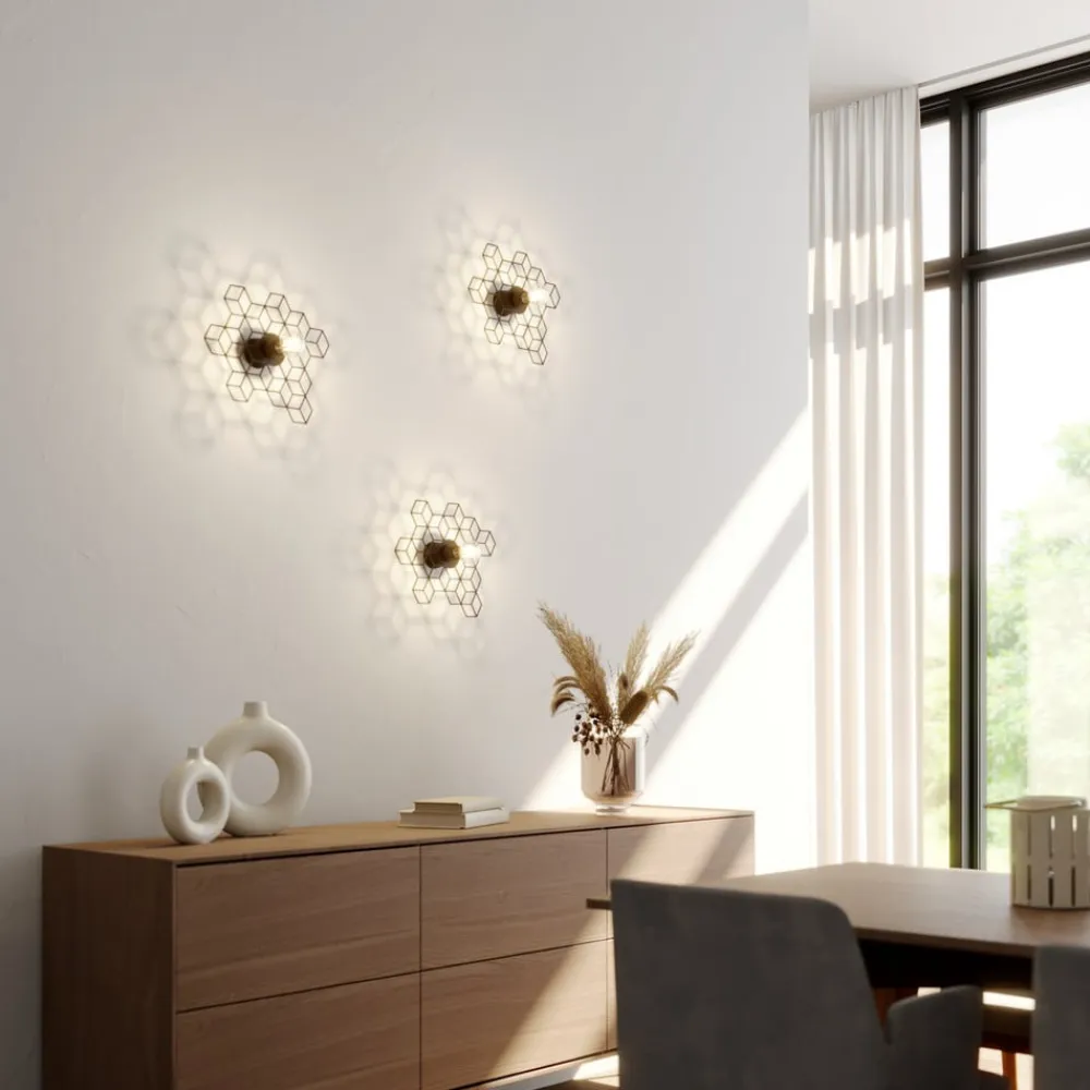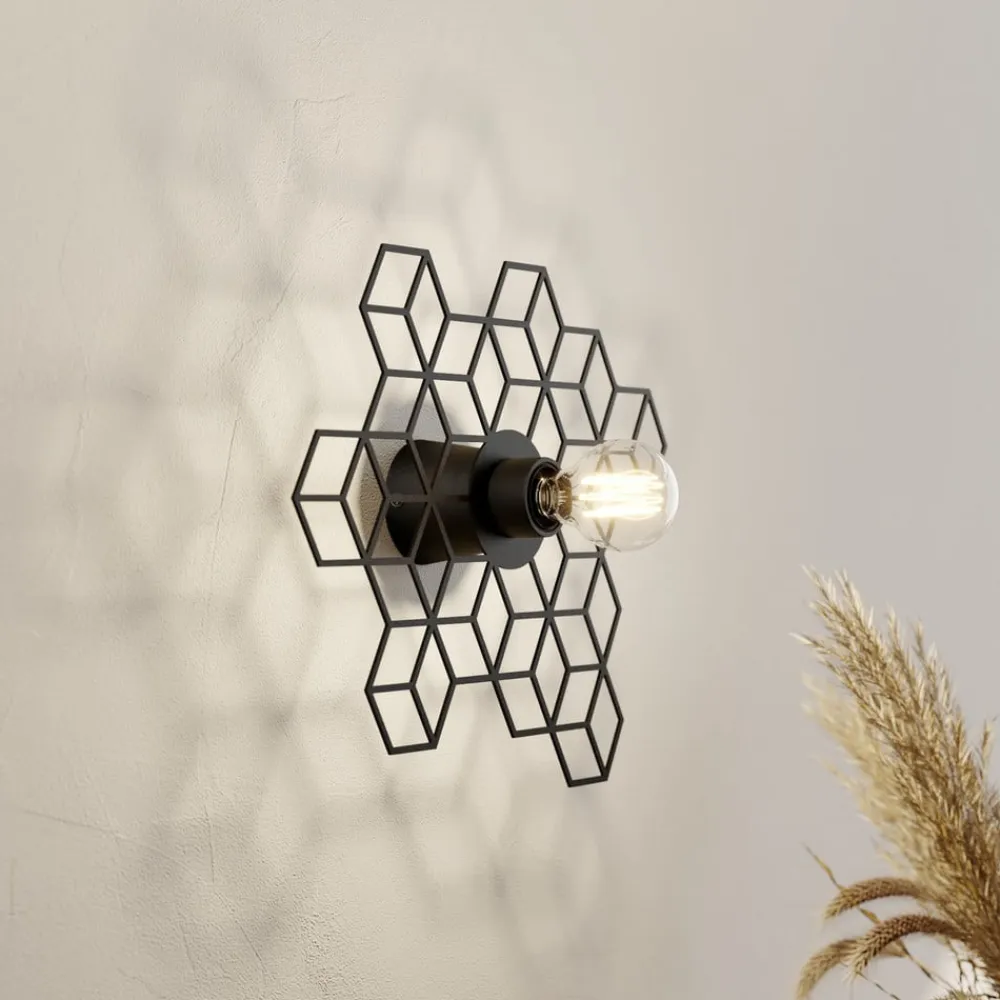 Sort væglampe Alexaru i et spektakulært bikagedesign: flo til opholdsstue, soveværelser og korridorer