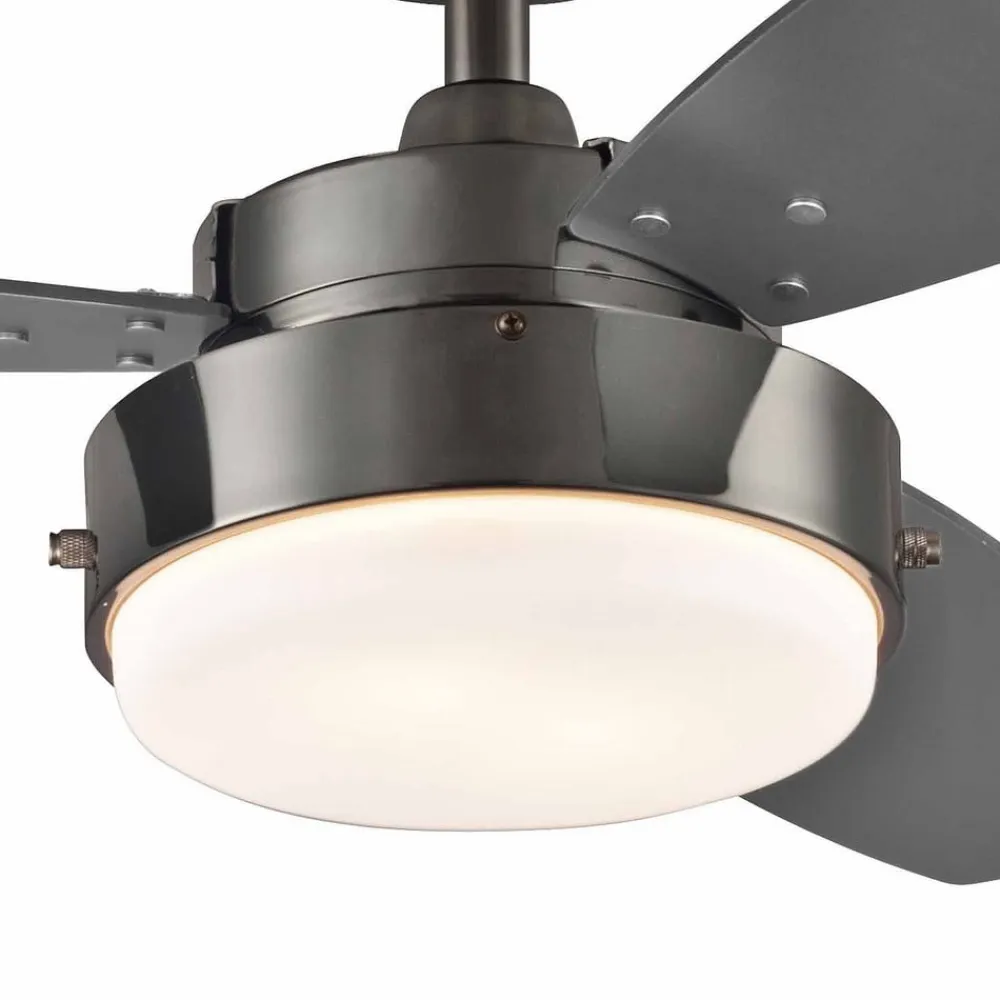 Sorte og grafitfarvede blade giver Alloy loftventilatoren et moderne look En ventilator skal ikke kun passe til rummet med hensyn til størrelse og ydeevne, men skal også harmonere visuelt med indretningsstilen: Denne attraktivt designede loftventilator passer perfekt til mange moderne boligstile og opfrisker luften i rum på op til 15 m². Inkl. halogenpære. Fjernbetjening eller vægkontakt kan bestilles som tilbehør. Funktioner Alloy loftventilatoren kan justeres i tre trin med hensyn til både hastighed og effekt. Hastigheden fremad og bagud kan indstilles ved hjælp af en skyder på huset. Dette muliggør drift om sommeren (køling) og vinteren (fordeling af opvarmet luft). Udstyret med belysning. Tekniske data Effekt pr. hastighed: – 30 watt ved 185 o/min – 33,8 watt ved 230 o/min – 47,4 watt ved 280 o/min