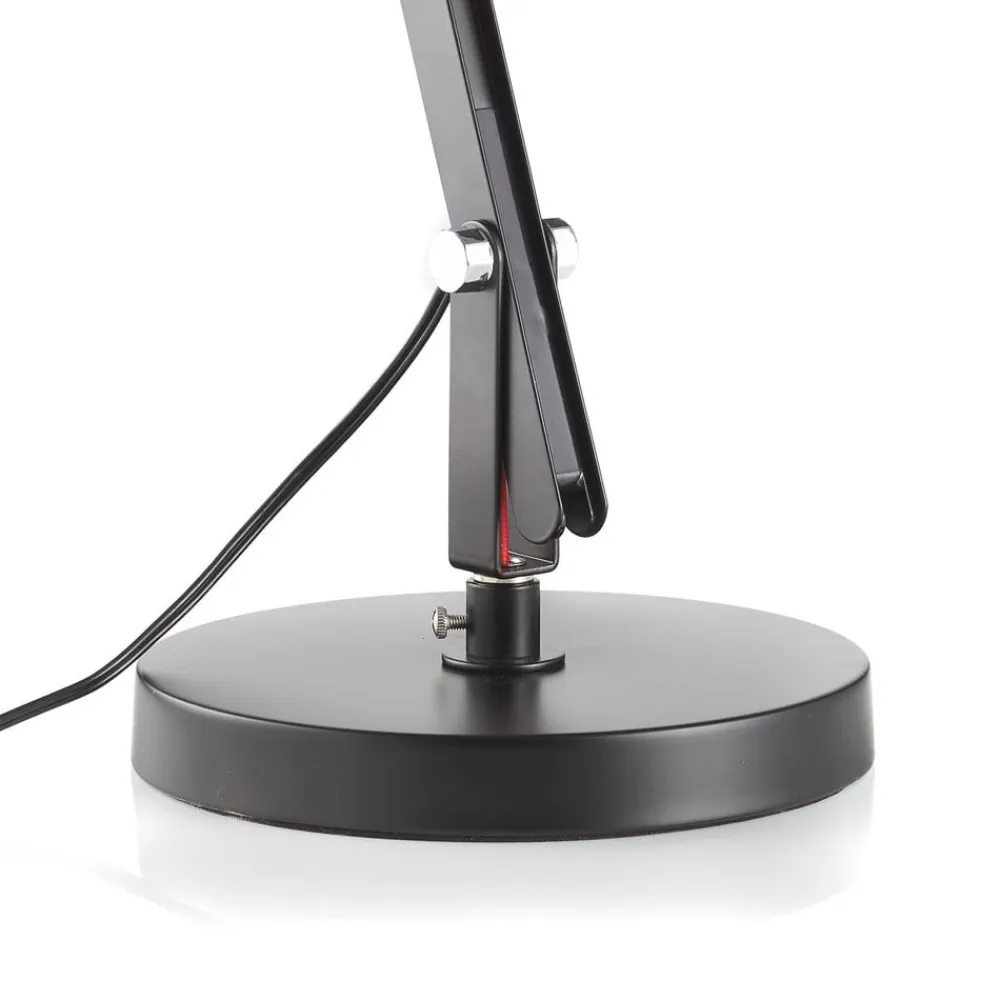 Uanset hvilke krav der stilles til dette arbejdspladsarmatur – med Amsterdam LED-bordarmaturet er der garanti for den rigtige løsning til enhver situation. Ud over stativet til placering på skrivebordet leveres bordarmaturet med en bordklemme til fastgørelse på skrivebordskanten eller en hylde samt med et vægbeslag. Tre led giver en ekstremt fleksibel justering af det varm hvide lys, der udsendes af de indbyggede COB LED’er. Et særligt blikfang er det knaldrøde kabel, der løber langs armaturets arm. Stik og tilslutningskabel med afbryder er sorte.