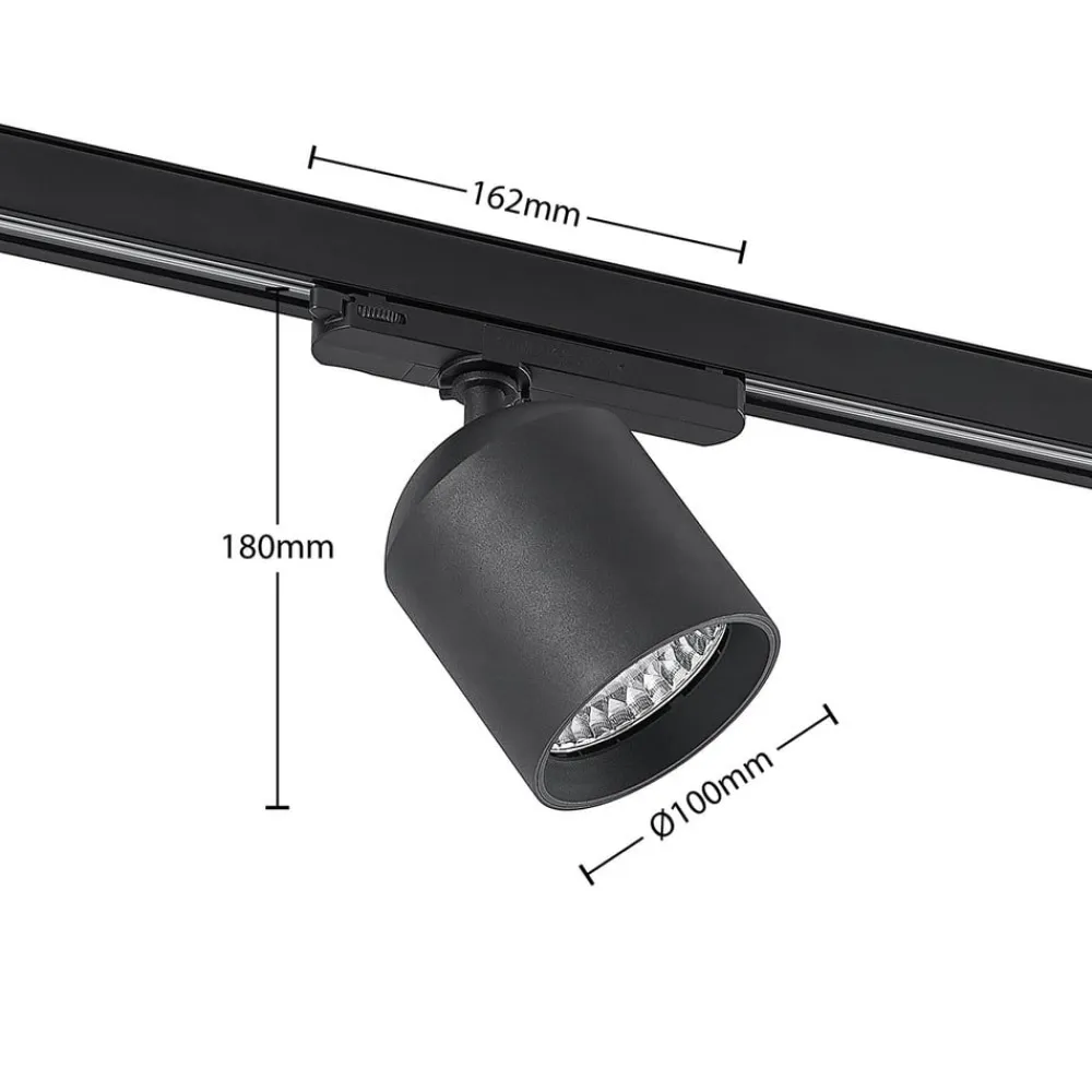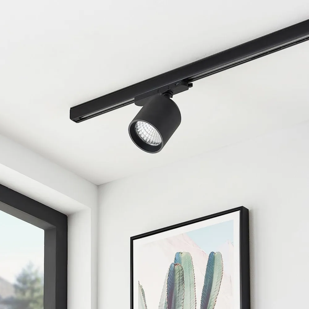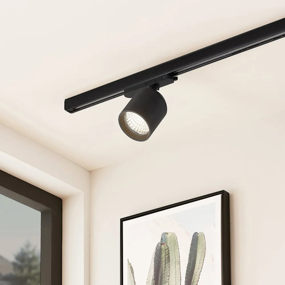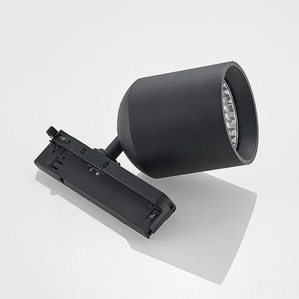 Lindby Skinnesystem>LED-spot 48 V Lumaro, sort, Ø 7,3 cm, aluminium, dæmpbar