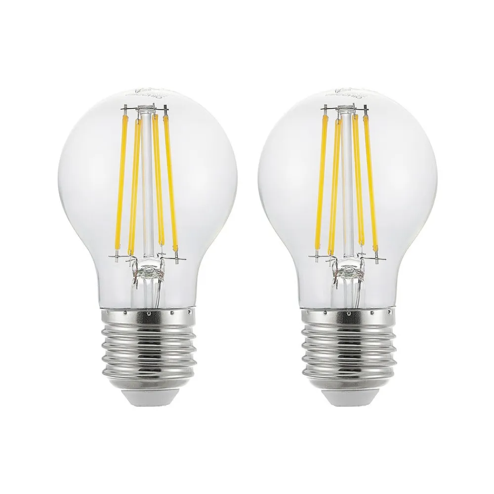 LED lampe E27 glødelampe klar, varm hvid, dæmpbar i sæt med 2A dekorativ erstatning for 60W glødelamper i mange eksisterende armaturer er denne klare LED lampe med glødelampe optik. Uden en ekstra lysdæmper kan lampens lysstyrke justeres i tre trin (100%, 55%, 20%) via vægkontakten.- levering i et praktisk sæt med 2 stk