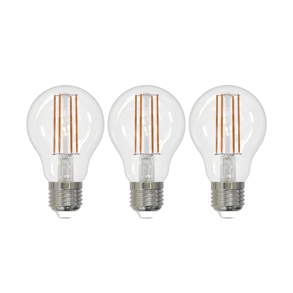 LED-filamentpære E27 8W klar 2.700K dæmpbar sæt med 3 stk