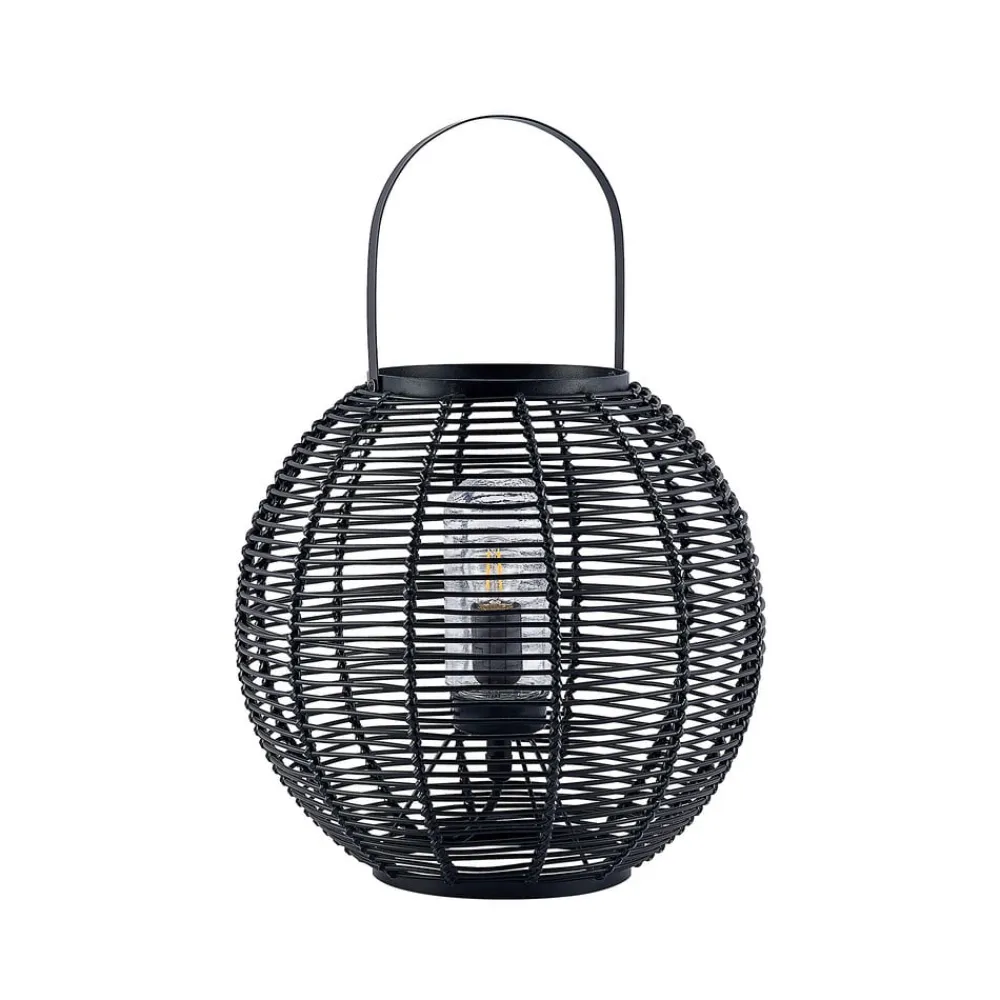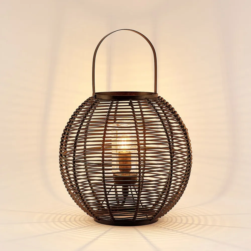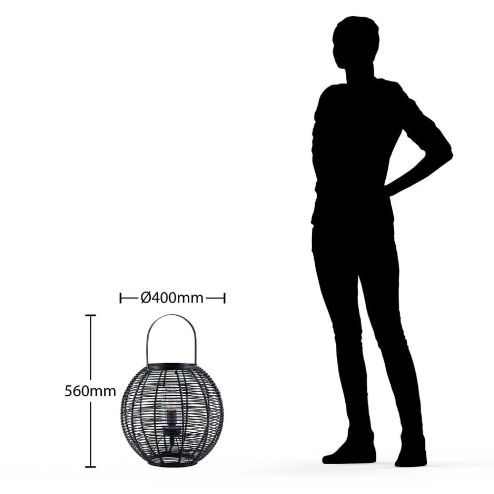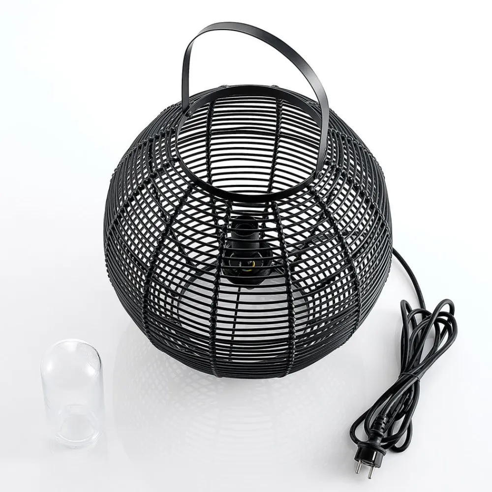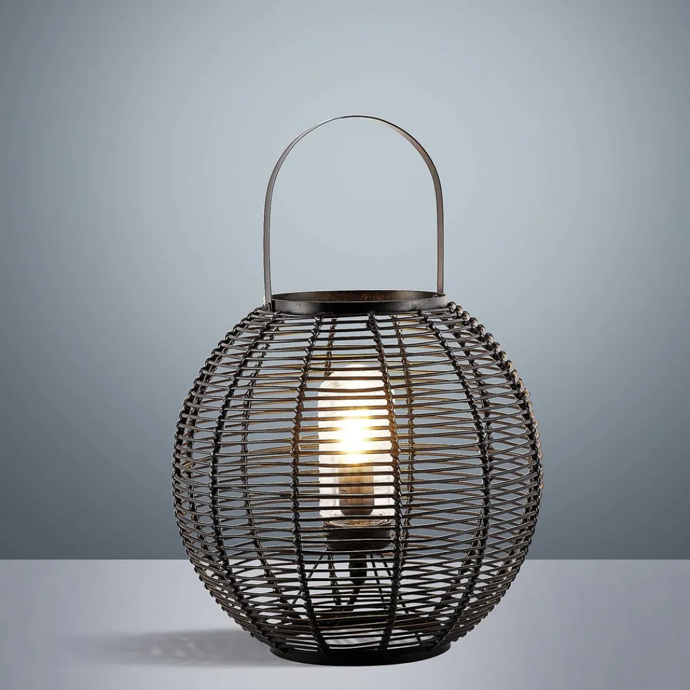 Feysal bordlampe består af et rundt metalarmatur med et burudseende. Derudover har lampen et praktisk håndtag, så den hurtigt og nemt kan finde et nyt sted. Metalstiverne er fastgjort lodret og vandret og skaber et smukt mønster. Lyset skinner indefra mod metallet og skaber et vidunderligt samspil mellem lys og skygge. Takket være IP44- kapslingsklasse kan armaturet også bruges udendørs. Lampen er også beskyttet af et glasdæksel.