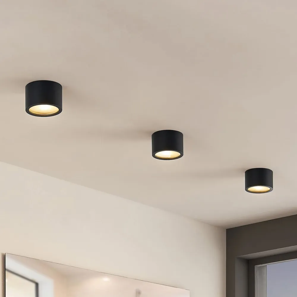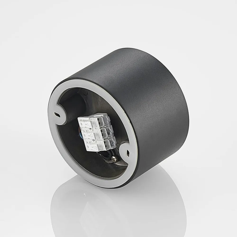 Rund downlight Nieva med sort overflade og lynkobling Nieva er en smuk allrounder med en sort finish og et kompakt, cylindrisk design. Downlighten er lige så velegnet til køkkener, korridorer og stuer som til rum i erhvervsejendomme. Flere lamper kan installeres på række eller i et rum for at opnå en mere omfattende belysning af omgivelserne. Designet er enkelt og tidløst og kan derfor bruges på mange forskellige måder. Den runde loftlampe har også en skrueløs tilslutningsterminal til hurtig, sikker og værktøjsfri elektrisk installation.