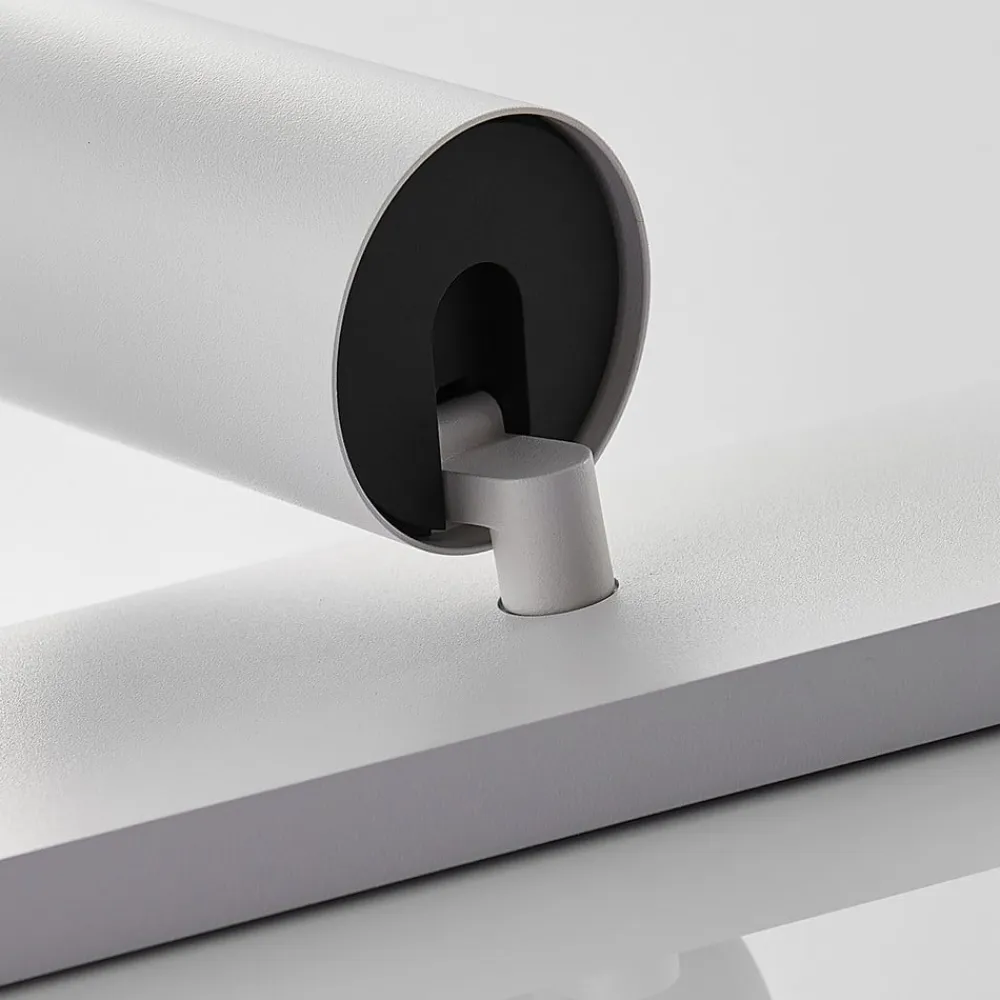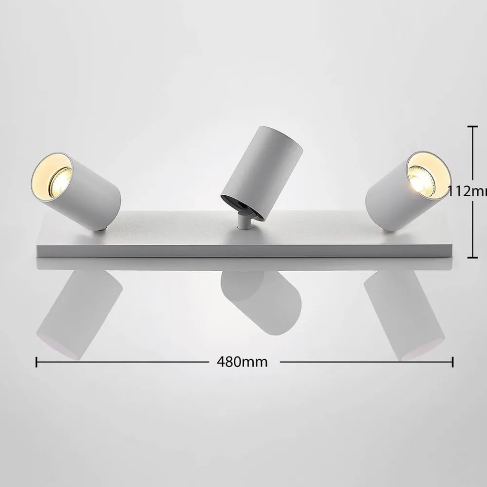 Hvid Brinja-spotlight af aluminium i 2-pak Den hvide Brinja-lampe af aluminium i høj kvalitet består af tre cylindriske spotlights, som alle kan vippes 90 grader og drejes 350 grader. Spotlightsene er monteret på et rektangulært beslag, som kan sættes fast i loftet eller på væggen. De tre kraftige spotlights kan også bruges til at belyse store rum optimalt. Da spottene kan drejes separat, kan de pege i forskellige retninger efter behov og dermed belyse forskellige områder i rummet. I dette tilbud kan Brinja købes som en dobbeltpakke.