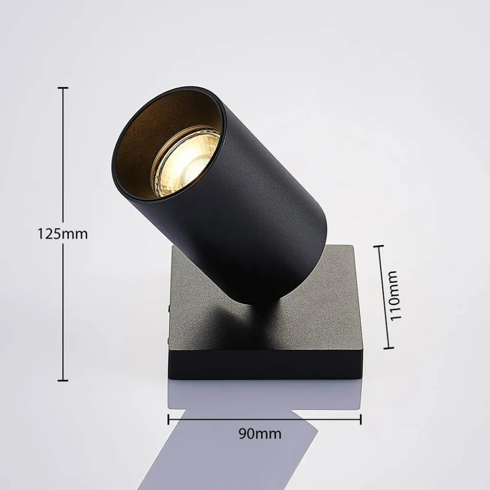 Spotlight Brinja præsenterer sig i elegant sort og passer takket være sit tidløse design ind i alle rum. Med sin mørke farve danner den en spændende kontrast til lyse lofter og vægge og bader rummet i et behageligt lys.