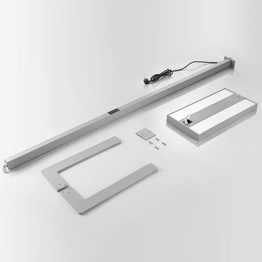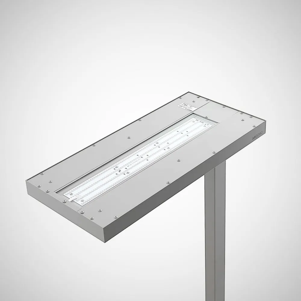 Ideel til kontorer – dæmpbar Logan Ultra LED-gulvlampe til kontor med touchpanel, sensor, bevægelsessensor og CCT-lysstyring Den moderne Logan Ultra LED-gulvlampe er ideel til belysning af en arbejdsplads. Det giver direkte lys ned mod arbejdsfladen, som kan dæmpes og også ændres i hvidt lys ved hjælp af det letbetjente touchpanel på armaturet. Samtidig spotlighter lyset også opad og skaber indirekte rumbelysning ud over den målrettede omgivelsesbelysning. Dette kan også dæmpes separat via panelet, og lysfarven kan justeres. Den integrerede dagslyssensor sørger for, at lyset tændes automatisk, når det bliver mørkt, og justerer lysstyrken afhængigt af det omgivende lys, mens en bevægelsessensor sørger for, at lyset tændes, når der er aktivitet, og slukkes efter 30 minutters inaktivitet. Takket være den U-formede base kan LED-gulvlampen placeres perfekt ved arbejdsstationen, hvilket sikrer ideelle arbejdsforhold – til skærmarbejdspladser – dæmpbar – CCT-farveskiftfunktion – med bevægelsessensor (slukker efter 30 min) – med dagslyssensor – U-formet base – flimmerfri – SDCM < 3 – UGR < 17 – direkte og indirekte lys – slagfasthedsklasse IK02