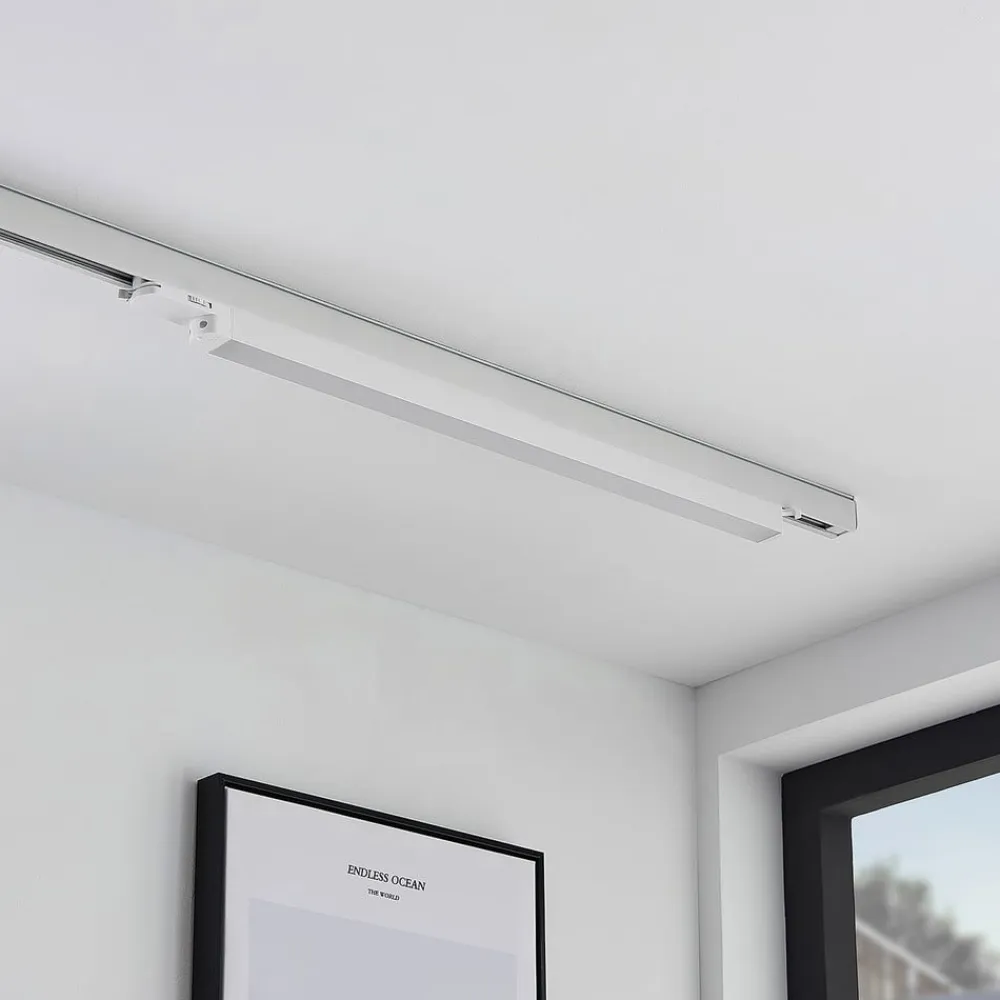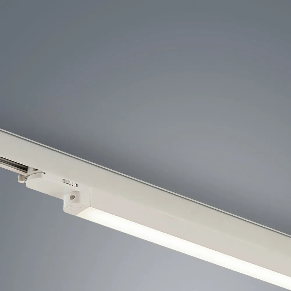 Hvidt Harlow LED-skinnesystem til brug på et 3-fase skinne system Harlow kan bruges overalt, hvor der er installeret en 3-fase skinne og er en alsidig lyskilde med en slank, aflang form og LED’erne dækket af en hvid plastdiffusor for den mest ensartede lysudsendelse som muligt. Det lineære LED-armatur er med sit klare, effektive lys ikke kun velegnet til private områder, men kan også bruges overalt i kommercielle miljøer og giver pålidelig belysning, hvor lyskilden forbliver diskret i baggrunden. Det hvide overfladedesign taler også for den næsten universelle brug af denne lyskilde. Strømskinnen, som det lineære Harlow-armatur er fastgjort til, kan også udstyres med andre, forskellige typer armaturer, for det er netop fordelen ved en strømskinne: Den gør det muligt at implementere et skræddersyet belysningskoncept og opfylde alle forhold og krav på stedet – UGR 29.3 – SDCM < 4