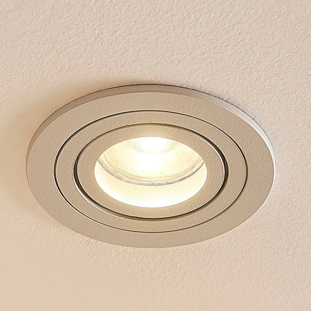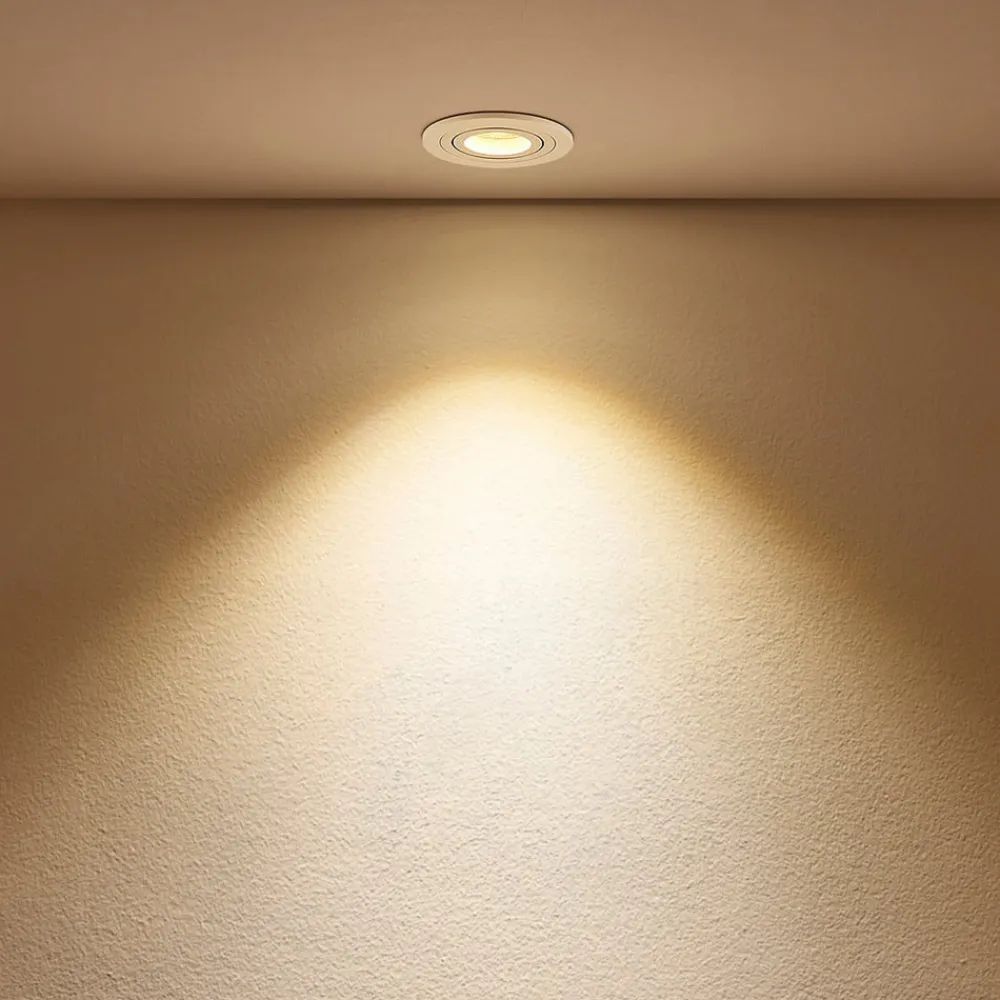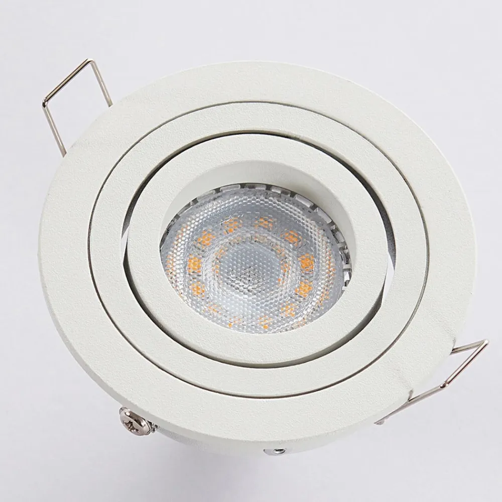 Hvid GU10 indbygningsspot Sophia med drejelig lyskildeindsats Sophia er et enkelt indbygningsarmatur, som kan bruges i mange miljøer, fordi det ser så diskret ud. Den indvendige indsats med lampeholderen kan drejes, så lyset kan rettes optimalt. Den hvide overflade og den runde form understreger indbygningsspottens diskrete effekt og gør den til en allrounder til belysning i stuen.