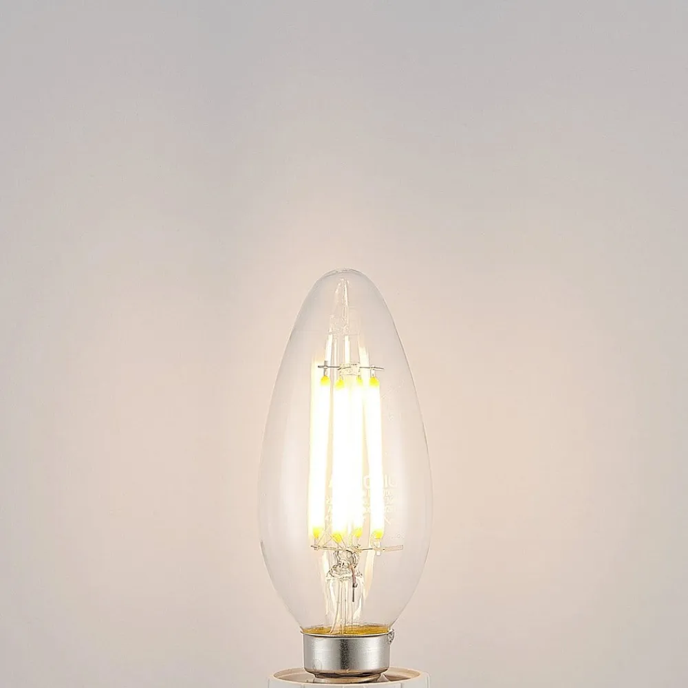LED stearinlys lampe E14 4W glødetråd, 2.700K, dæmpbar i et sæt af 2Med den eksisterende lyskontakt kan denne lampe ikke kun tændes og slukkes, men kan også skiftes til tre lysstyrker (100%, 55% og 20%).Den dekorative stearinlys lampe med klart glas og glødetråd teknologi er perfekt til lysekroner og åbent designede armaturer.- Lampen leveres i et praktisk sæt af 2