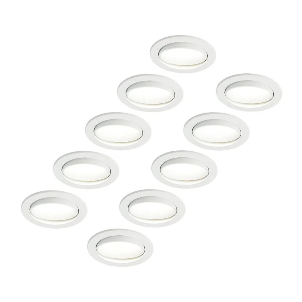 Katerin er en svingbar, dæmpbar LED-indbygningsspot med hvid ramme og rund form, hvor lysfarven kan indstilles