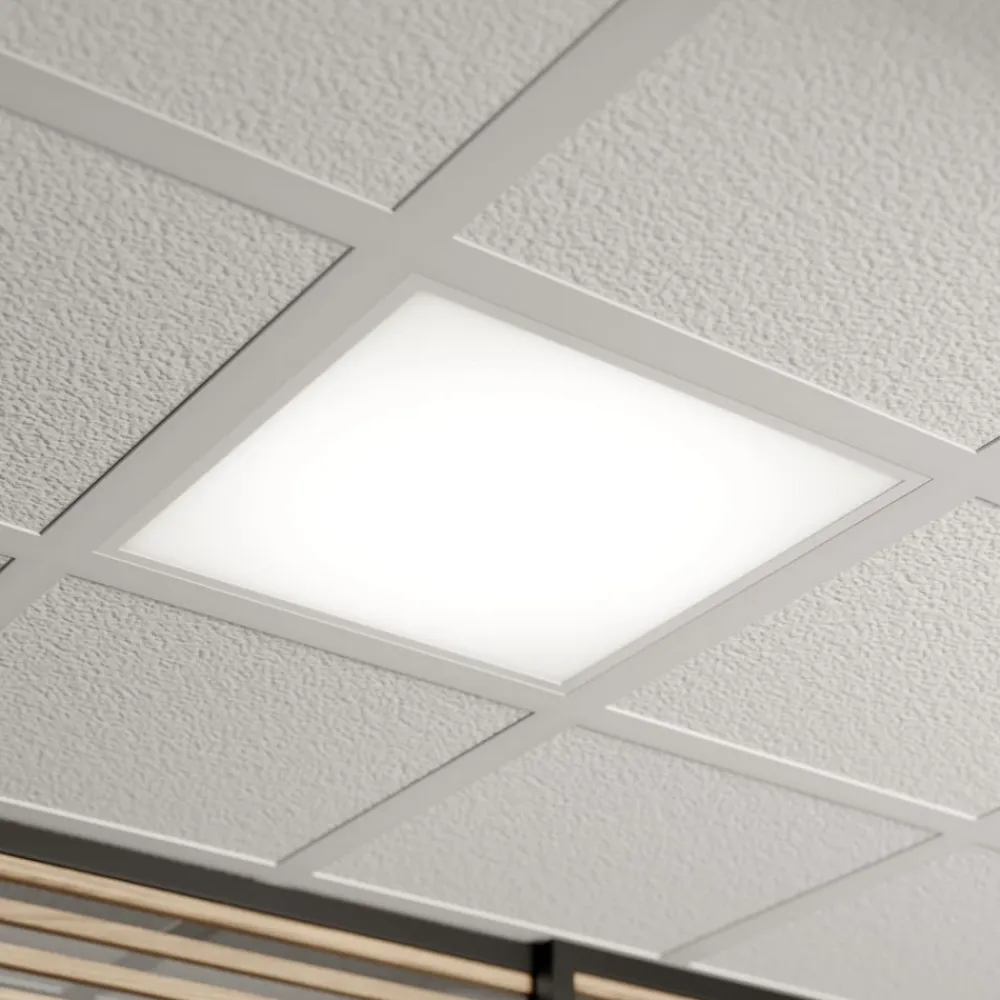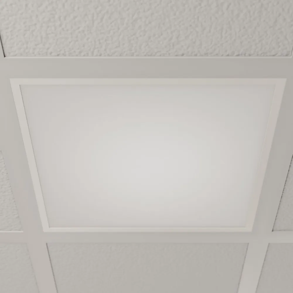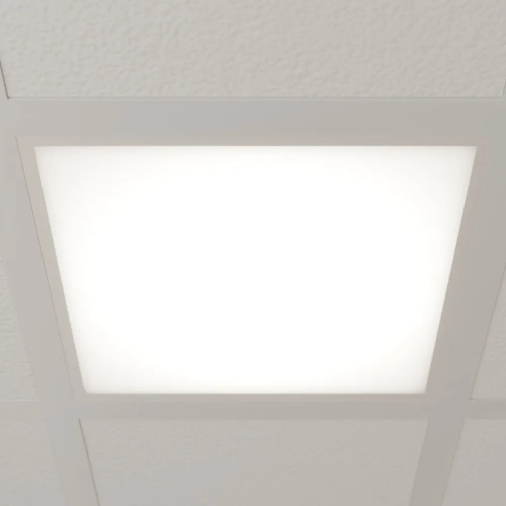 Vinas LED-panel til kontor- og erhvervsbrug Vinas har en hvid ramme og en hvid lysende overflade, hvilket giver LED-panelet et usædvanligt slankt udseende. Det er velegnet som indbygningsarmatur til gitterlofter. LED-panelet giver et klart og energieffektivt lys i en universel hvid lysfarve, hvilket gør armaturet ideelt til kontor- og kommercielle anvendelser. En passende ramme til overflademontering, nedhængt, halvt indbygget, indfældet og lamelindfældet montering fås som tilbehør – Blændingsindeks: UGR <19