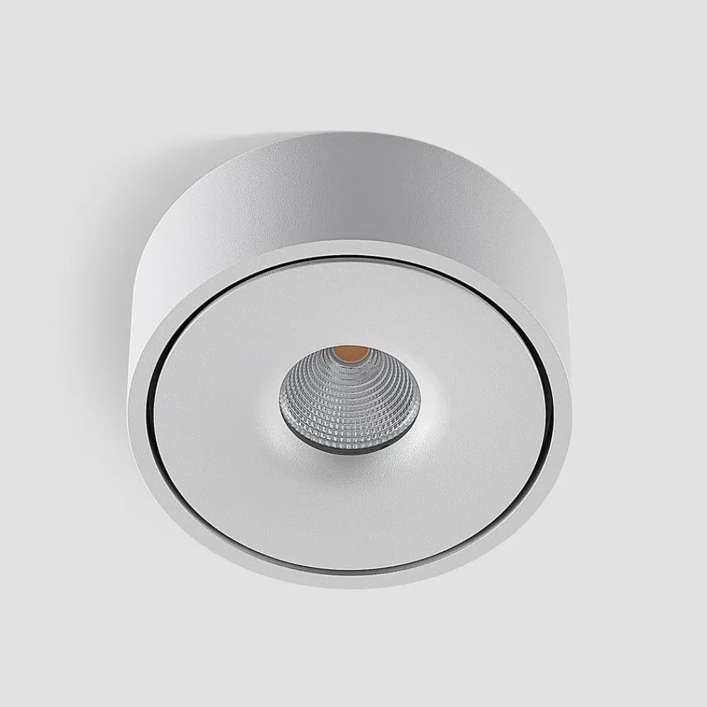Diskret Rotari LED-loftlampe i moderne design Rotari LED-loftlampen imponerer med sit minimalistiske udseende og klassiske runde form. Den trænger sig ikke på og kan derfor fint integreres i forskellige indretningsstile. Rotari kan også bruges i den kommercielle sektor. Det runde, flade aluminiumshus huser det permanent installerede LED-modul i midten. Reflektorpæren har en udstrålingsvinkel på 34° og forbedrer rummet med sit varmhvide lys. Armaturet kan om nødvendigt dæmpes med en forkantstyret dæmper eller en bagkantstyret dæmper og har en CRI-værdi på > 90.