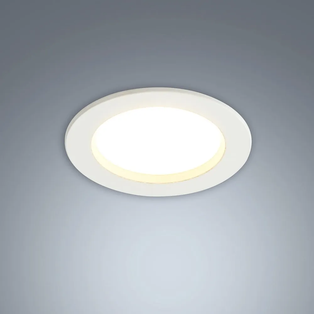 Rund LED-indbygningslampe Milaine med hvid plastramme og lysfarve, der kan justeres før installation Milaine er en alsidig LED-indbygningslampe med mange fordele. Det runde design med den hvide overflade virker utroligt enkelt og kan bruges næsten overalt. Dette diskrete indbygningsspot kan bruges i både kommercielle og private miljøer og kan endda monteres i fugtige rum takket være kapslingsgraden IP44. Lysfarven kan indstilles til et af tre niveauer, før den indbygges i loftet, da der er en DIP-kontakt på indbygningslampens hus. Med en strålevinkel på 100° spredes lyset ret bredt, så Milaine også kan bruges til at oplyse et større område. Der er praktisk mulighed for gennemfortrådning til tilslutning af flere armaturer af denne type – SDCM <; 5 – UGR <; 25