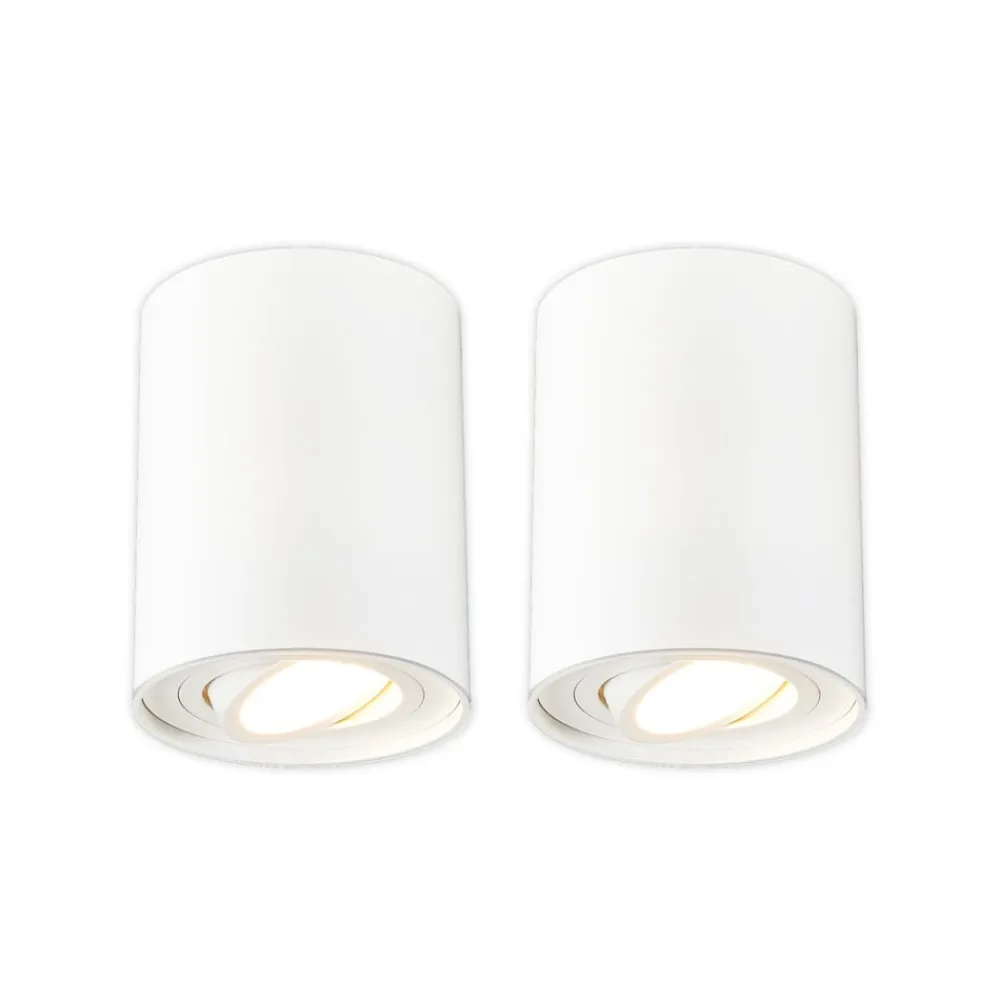 Cylindrisk påbygningsspot Jolina med justerbar lysudstråling, i praktisk sæt med 2 stk. Denne påbygningsspot med hvid overflade har et enkelt og moderne design, som gør den velegnet til en lang række anvendelser. Den drives med en GU10 højspændingshalogenlampe på op til maksimalt 50 watt. Lysudstrålingen kan justeres variabelt takket være den 25° bevægelige indvendige reflektor, så visse områder i rummet kan fremhæves på en dygtig måde – med skrueløs hurtigkoblingsterminal af høj kvalitet (holdbar, sikker og værktøjsfri fjedermekanisme) – leveres som et sæt med 2 stk