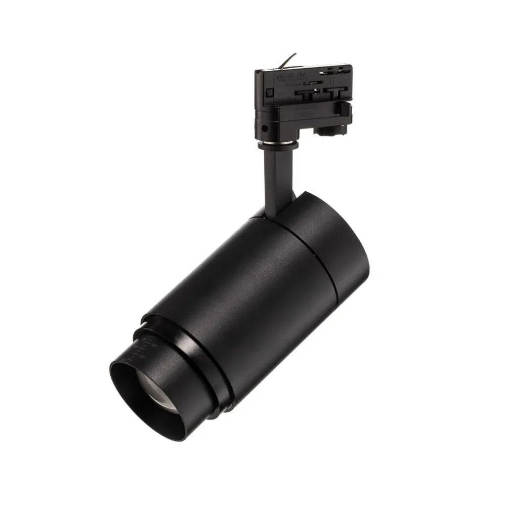 Sort Nanna LED-skinnespot – justerbar udstrålingsvinkel, til 3-faset skinne, drejelig og svingbar Denne skinnespot er kompatibel med almindelige 3-fasede skinnesystemer og kan bruges både privat og kommercielt. Den cylindriske skærm har et aluminiumshus i sort og en indvendig linse, hvis lysudstrålingsvinkel kan justeres fra 15°, hvilket er ret smalt og spotlight-agtigt for at skabe spotformet lys, op til 60°, hvilket svarer til en bredere lysudstråling for at belyse et lidt større område. Der er små markeringer på spotlighten til korrekt indstilling af vinkel, og spotlighten er meget velegnet til professionel belysning af kommercielle rum, hvor de variable justeringsmuligheder kan bruges til at skabe en tilpasset belysningssituation, især fordi selve spotlighten også kan drejes og svinges.