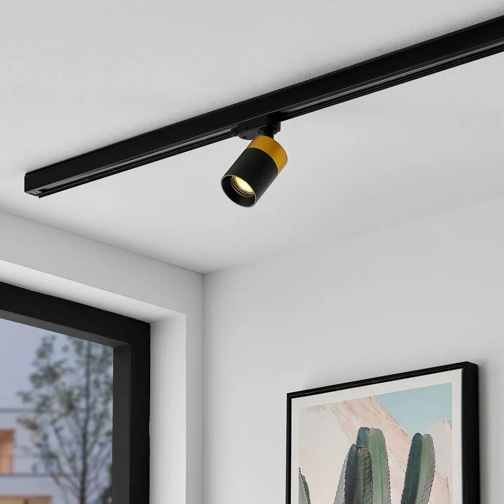 Loftspotten Nikora overbeviser med sit elegante design og sin praktiske håndtering. Den er fremstillet af sort aluminium og har en smal, gylden strip i bunden af lampehovedet, der giver den det lille ekstra. Hovedet kan drejes 350° og svinges 90°, hvilket gør det muligt at belyse alle hjørner af et rum på en fleksibel måde. Loftspots Nikora kan udstyres med GU10-pærer, som giver det nødvendige lys. Det diskrete design kan nemt integreres i forskellige indretningsstilarter uden at overdøve det øvrige møblement. Spotten kan efter behov kombineres med andre lamper i serien og bruges til både private og erhvervsmæssige formål.