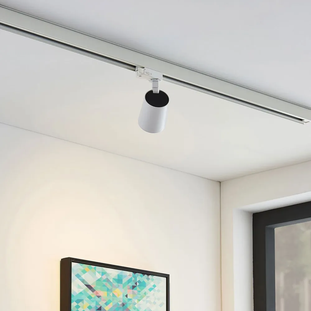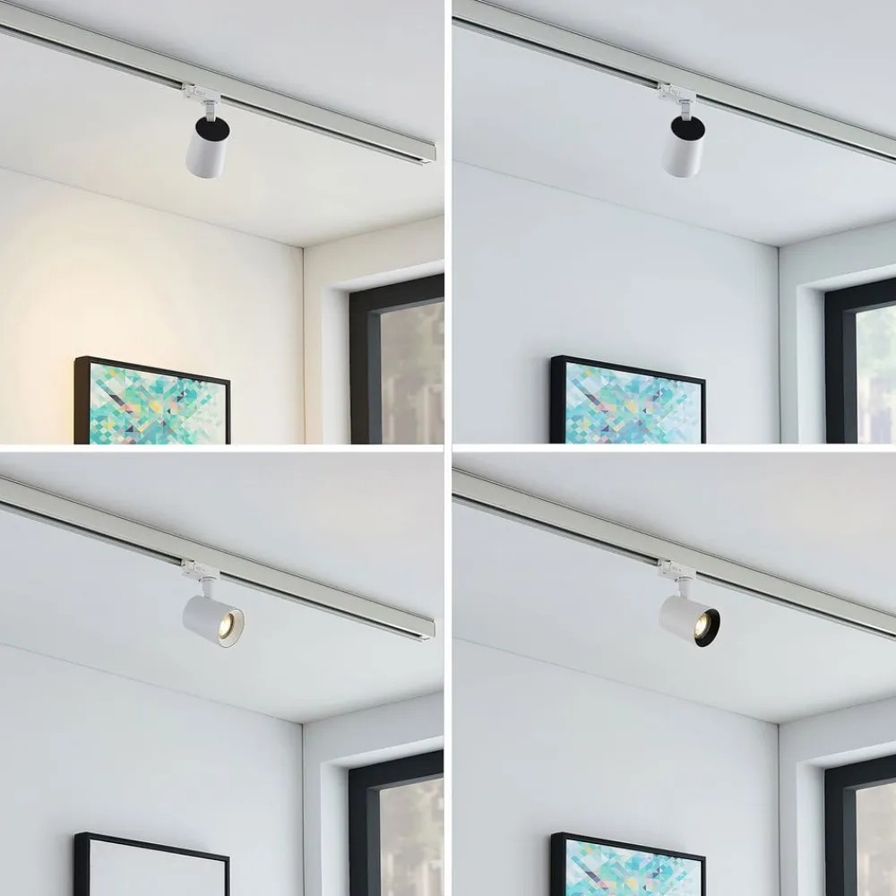 iavo spotlight med 3-faset skinnesystem i hvid Den hvide Iavo loftspot imponerer med et lineært design, der kombinerer funktionalitet med en høj lyseffekt. Takket være et praktisk skinnesystem kan flere spotlights monteres i loftet i enhver position. Det praktiske spotlight-system kan bruges til at belyse hvert hjørne af rummet optimalt, og armaturet kan drejes for at skabe et helt skræddersyet belysningskoncept derhjemme. Takket være det neutrale farveskema kan den fleksible lampe også integreres i en lang række forskellige indretningsstile – for et belysningskoncept, der ikke går på kompromis med designet.