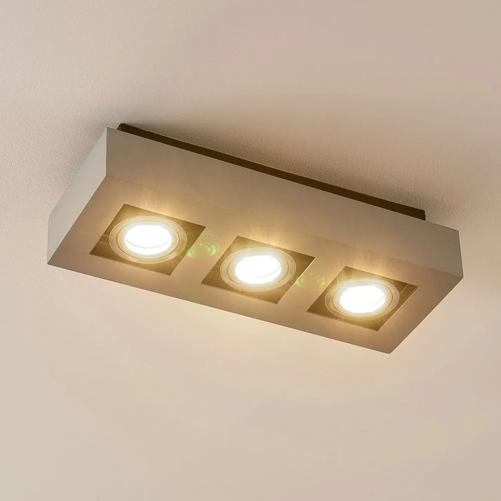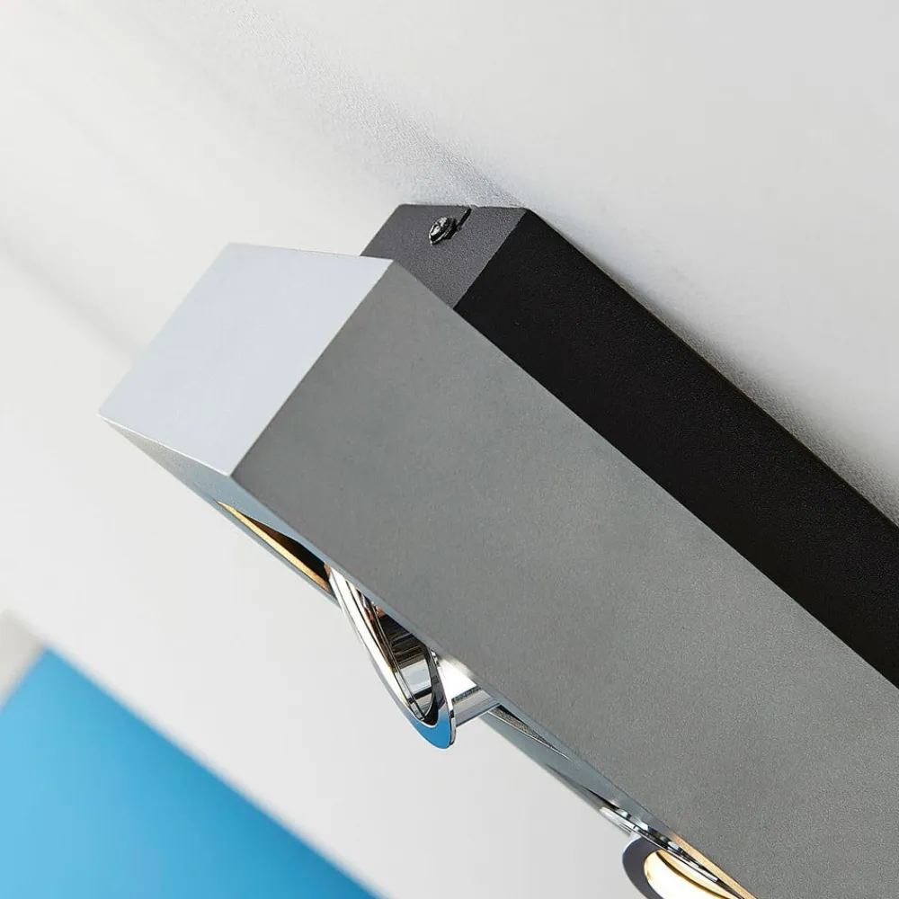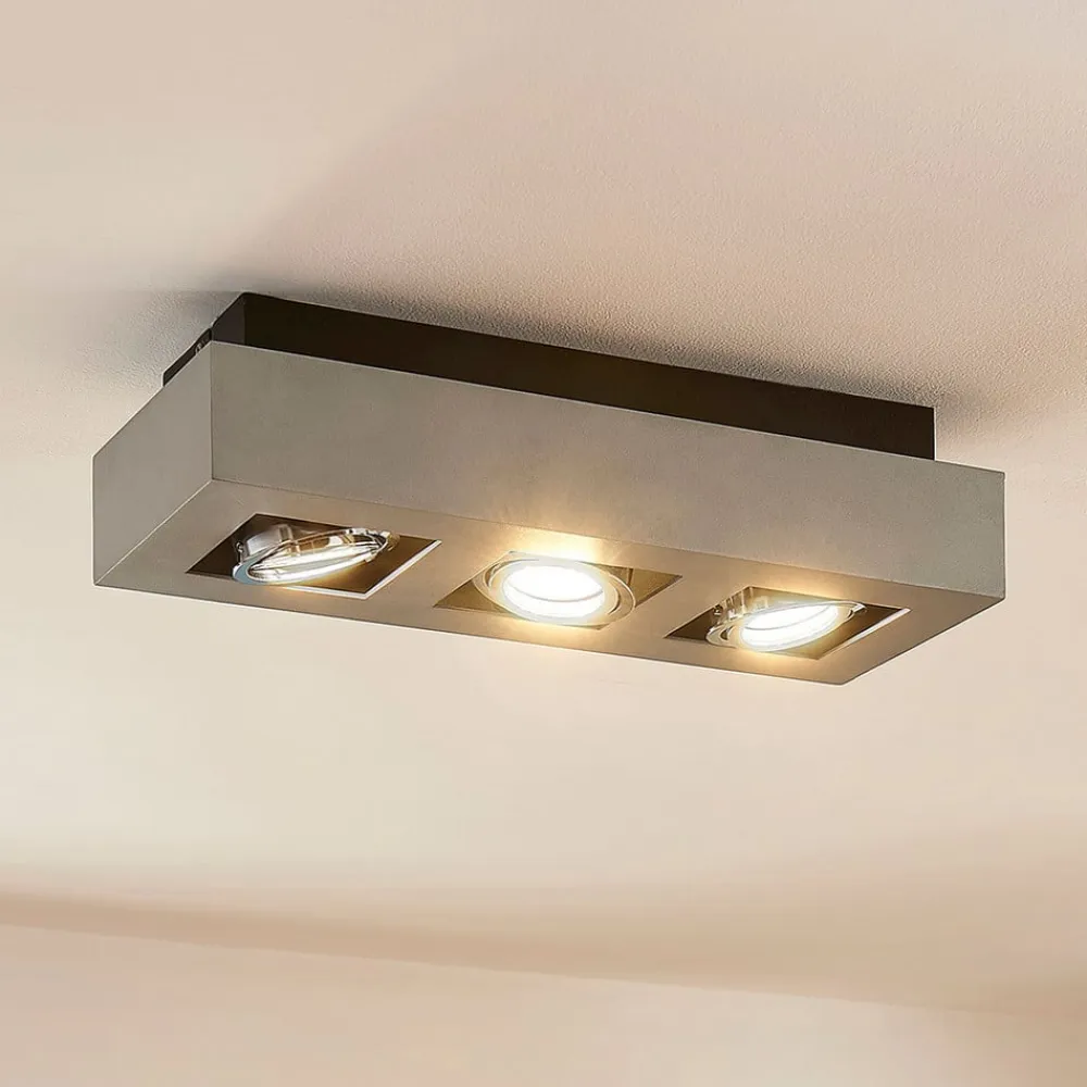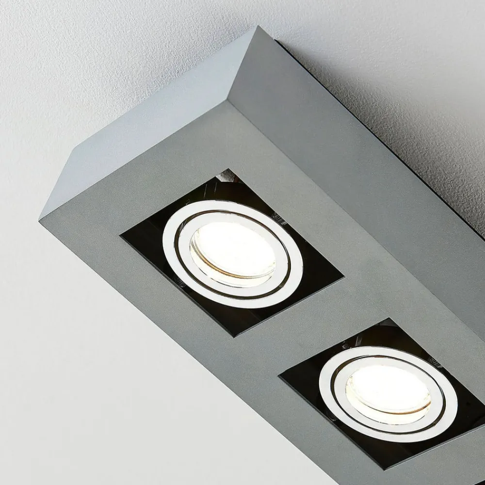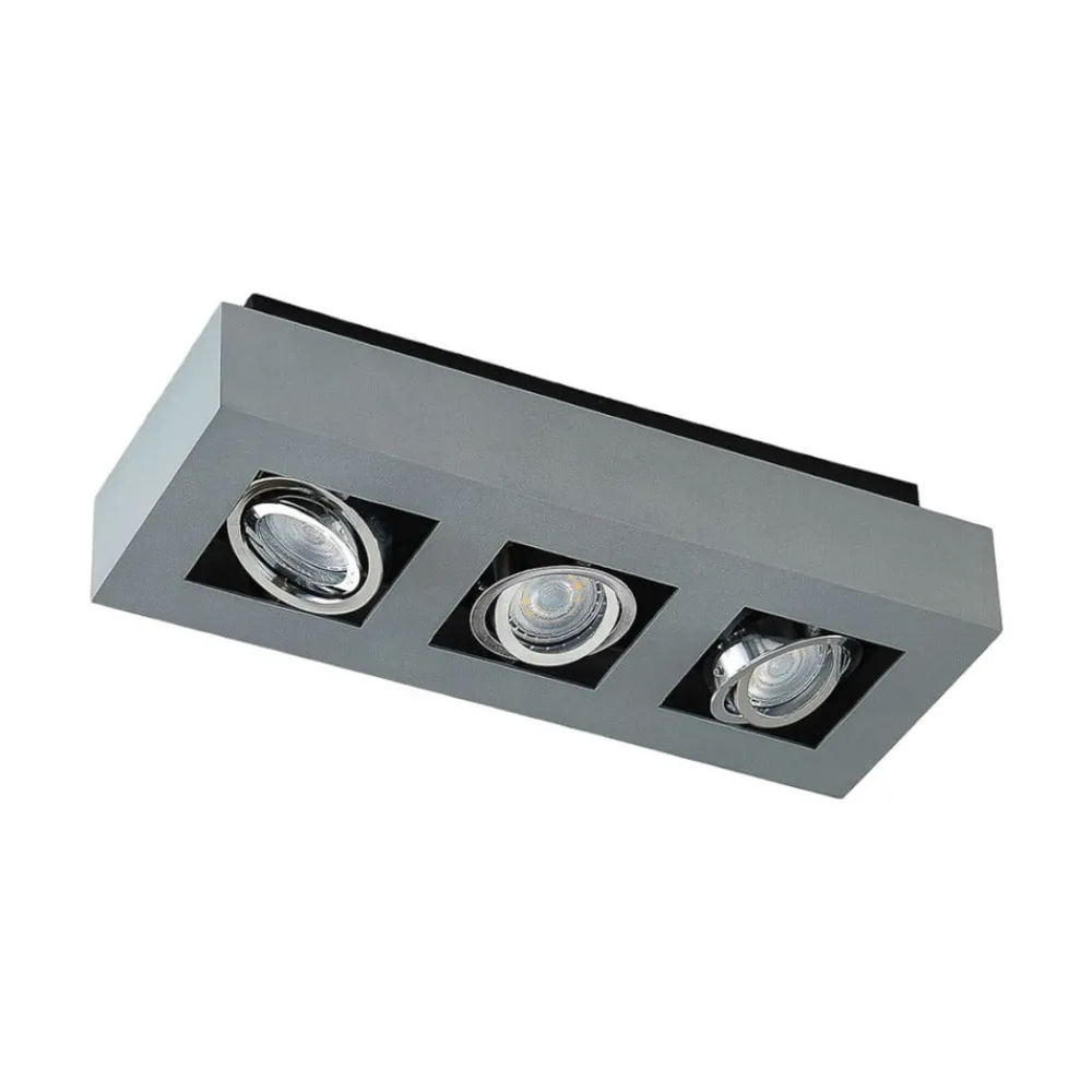 Vince – loftspot med tre GU10-fatninger Vince har drejelige lyskildeindsatser, så der kan opnås et mere individuelt tilpasset lysbillede, der opfylder kravene på stedet. Armaturet kan udstyres med GU10-lyskilder. Loftspottets kantede ramme er lavet af aluminium, som er malet sølvgråt og derfor har et tidløst look – med skrueløs hurtigkoblingsklemme af høj kvalitet (holdbar, sikker og værktøjsfri fjedermekanisme)
