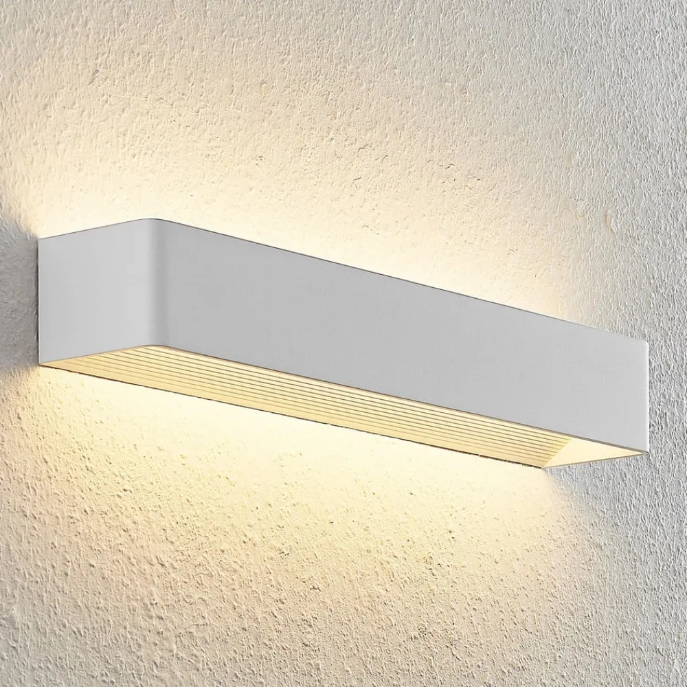 Hvid allrounder til stuen, gangen og soveværelset: LED-væglampe Karam i aluminium