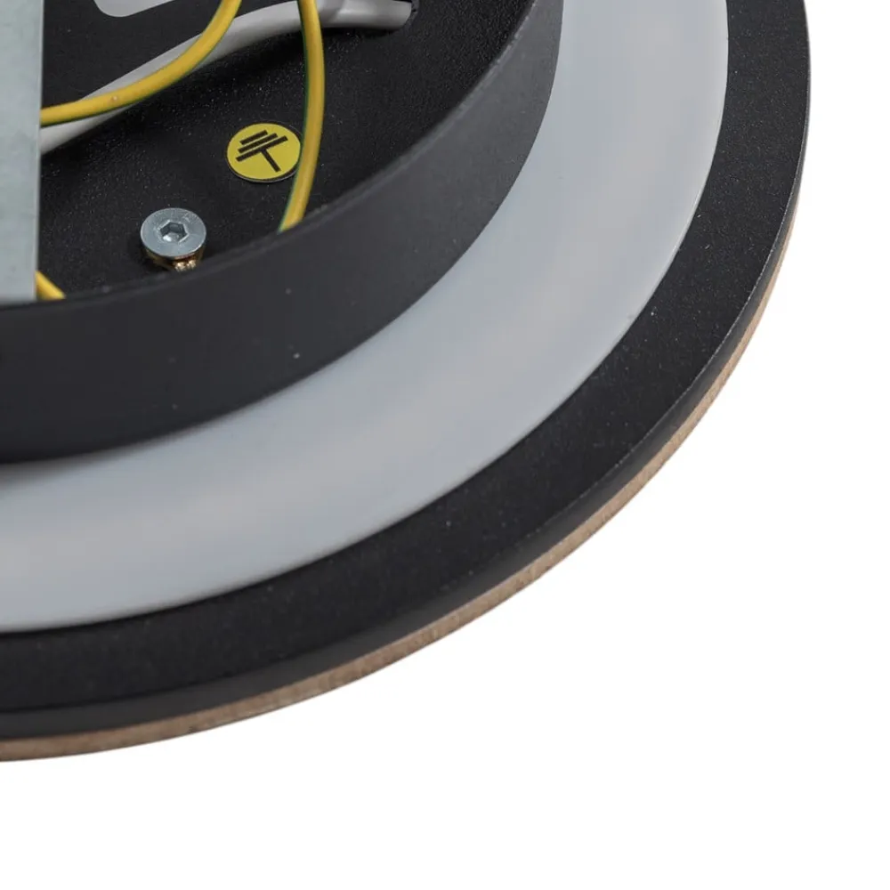 Lucande Loftlamper|Loftlamper>LED-loftlampe Orven, sort/træ, Ø50 cm, dæmpbar