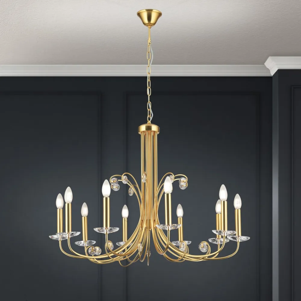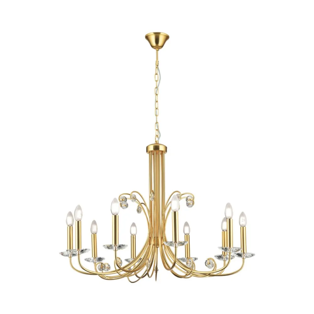 Ariane lysekrone, guldfarvet, Ø 92 cm, krystal, 10 lyskilder.^ORION Discount
