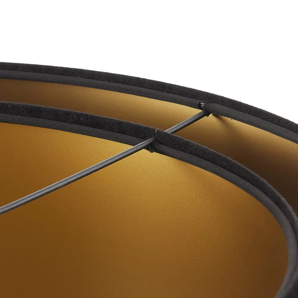 Emi pendel i sort og guld med asymmetrisk lagdelt look Ikke kun det rige farveskema i sort og guld, men også det asymmetriske lagdelte look af de to lampeskærme i fløjl af høj kvalitet gør Emi-pendlen til en slags armaturkunstværk. Lampens smukke, dystre look blødes op af det legende design. Samtidig ser Emi-pendlen meget elegant og luksuriøs ud, hvilket især skyldes de guldfarvede metalaccenter på indersiden af begge lampeskærme. Den moderne, transparente kabelføring bidrager også til det harmoniske design af dette ekstravagante smykke til loftet. Uanset om den matcher et industrielt boligkoncept eller en indretning med masser af træ og læder, er pendlen en smagfuld allrounder til bolig- og arbejdsområder.