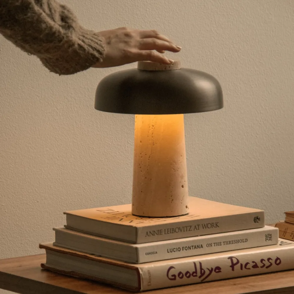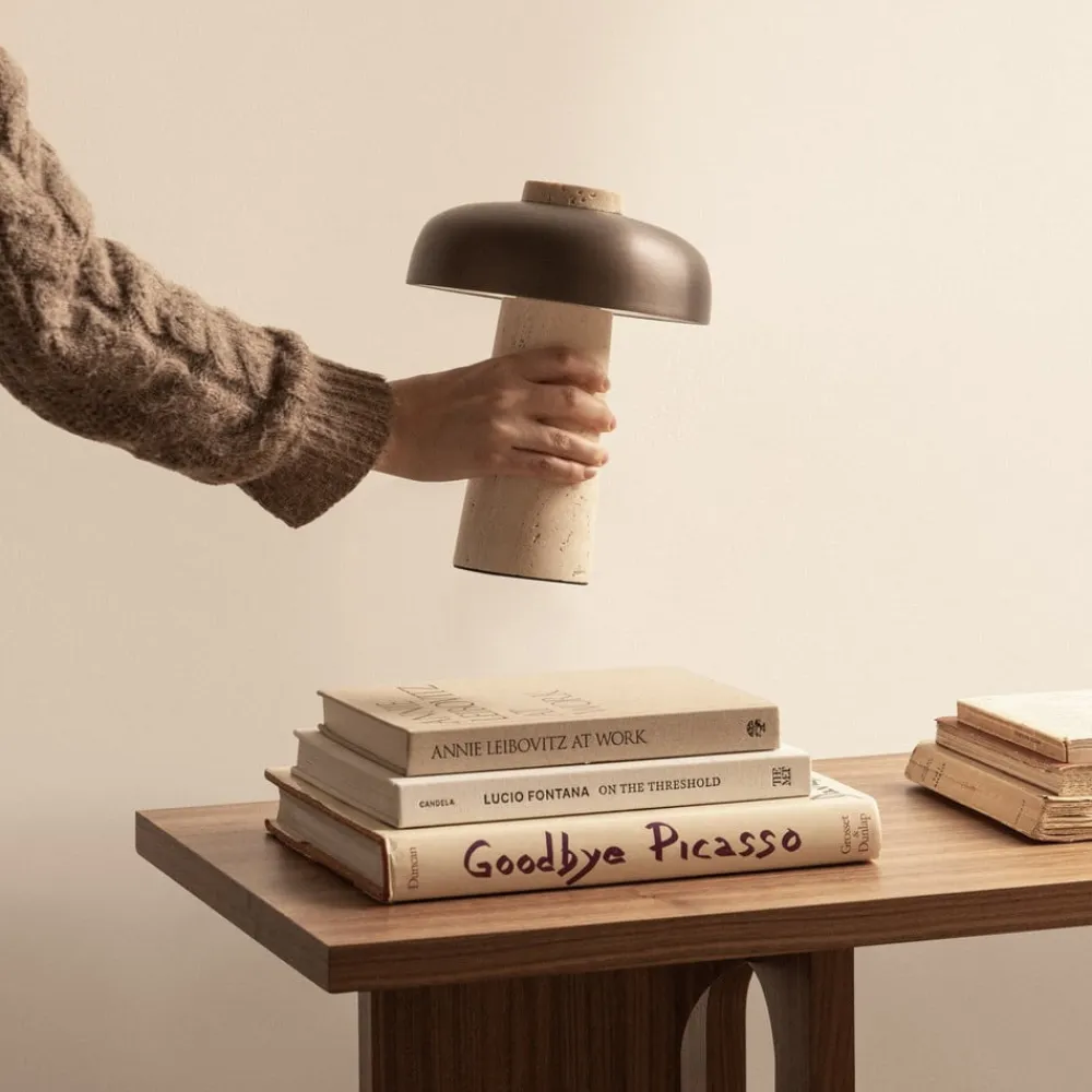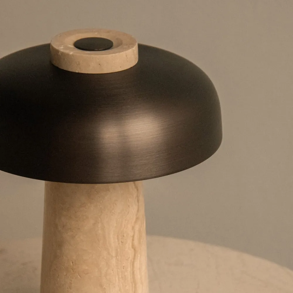 Elegant Reverse LED-bordlampe med touchdæmper Reverse LED-bordlampen kombinerer sofistikeret design med praktisk funktionalitet. Med en kapslingsgrad på IP44 er den ideel til udendørs brug. Lampen er lavet af travertin i høj kvalitet og er et visuelt HighLight. Den integrerede LED-lyskilde giver energibesparende lys og en behagelig varmhvid lysfarve på 2.700 K, som skaber en hyggelig atmosfære. En særlig funktion ved denne bordlampe er touchdæmperen, som gør det nemt at justere lysintensiteten. Det beige, bronze og brune farveskema understreger det elegante design, som er skabt af den anerkendte designer Aleksandar Lazic.