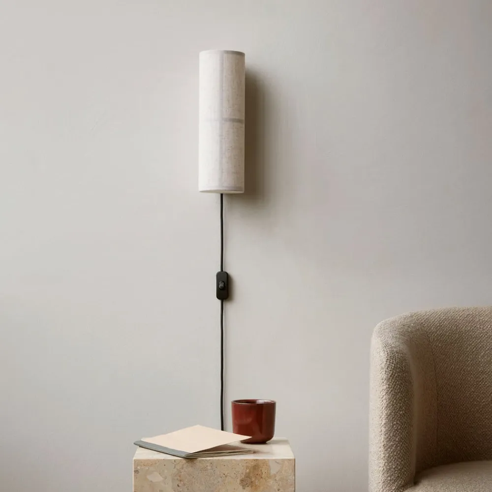 LED-væglampe Hashira med ledning og stikVæglampen Hashira er den nordiske fortolkning af den traditionelle japanske papirlanterne. Hashira betyder “søjle” på japansk, hvilket svarer til lampeskærmens form. Den cylindriske skærm er lavet af hør, et naturmateriale, der lever af uregelmæssighederne i stoffet, som igen skaber væglampens særlige effekt. Hashira har en forsyningsledning med stik og afbryder, men kan også tilsluttes direkte til en vægtilslutning. Hashira-lampeserien er designet af designerteamet Norm Architects, som er aktive inden for arkitektur, grafik, art direction og kommercielt interiørdesign og blev grundlagt i København i 2008. Designerne lægger stor vægt på tidløshed og holdbarhed.
