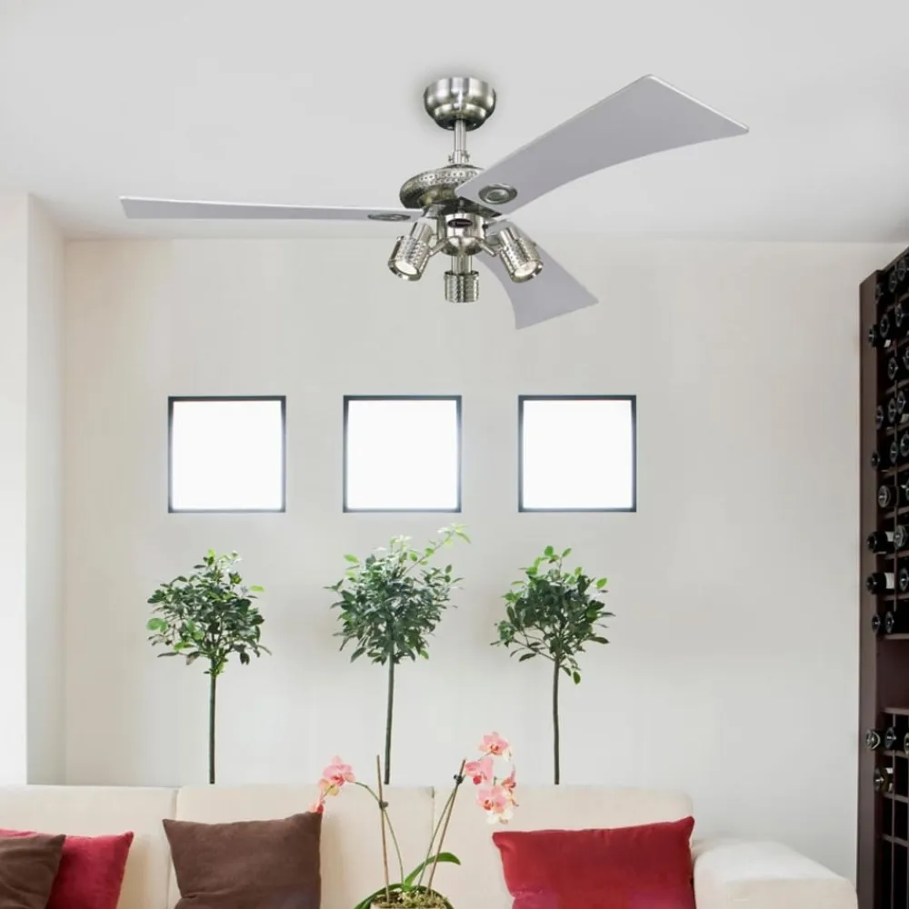 Den smagfuldt designede Audubon-loftventilator har et smukt metalmotorhus i mat nikkel-look og vendbare vinger i sølv- og ahorntræ-look. Tre cylindriske lysspots i nikkel-look giver tilstrækkelig belysning. Ved meget høje lofter (over 350 cm) anbefales det at bruge en forlængerstang. Der kan bestilles passende stænger via tilbehør.