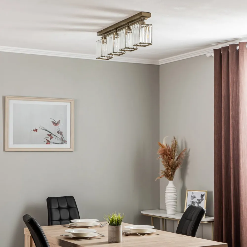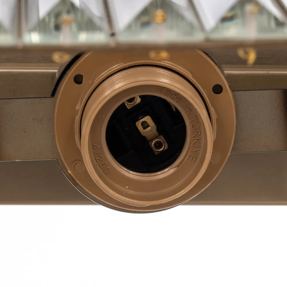 Loftlampen AV-1795-4EY kombinerer klassisk design med funktionel alsidighed. Den er fremstillet af højkvalitets jern og dekoreret med krystalglas og stråler i en antik guldfinish, der giver ethvert rum et elegant touch. Denne lampe er ideel til stuer, entreer og soveværelser og skaber en stemningsfuld atmosfære.