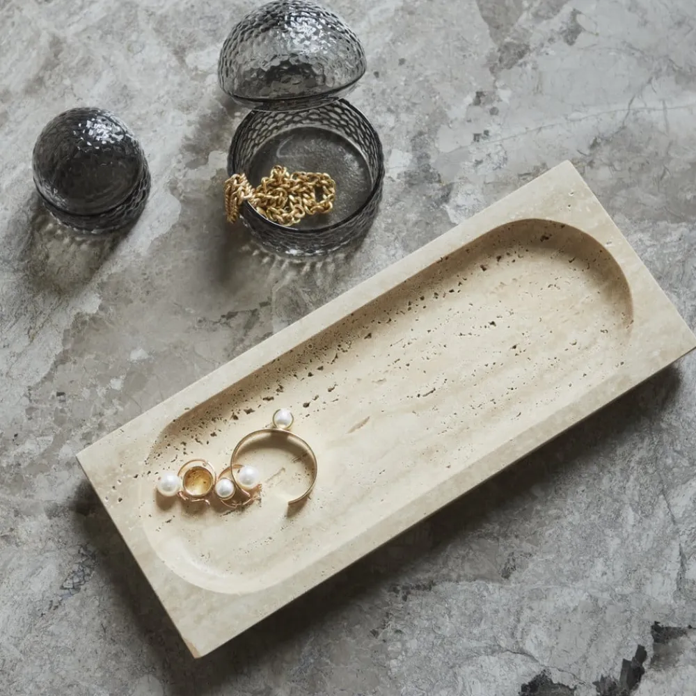 AYTM Møbel Og Interiør>Regina skål, længde 40 cm, bredde 16 cm, travertin