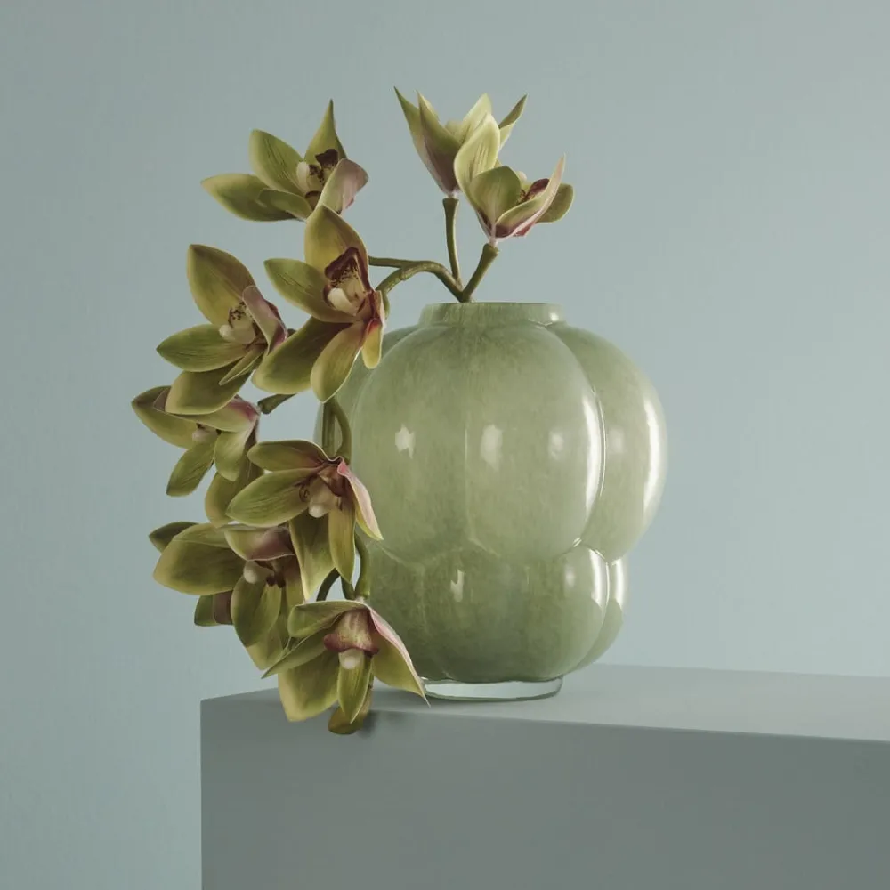 Uva-vase af mundblæst glas med gaveæske Uva-vasen af mundblæst glas er indbegrebet af voluminøs elegance. Form og betydning skaber den bedste forbindelse, for Uva betyder “drueklase” på italiensk og spansk. Som druer på en vinranke udtrykker denne vase glæde og fornyelse på en betagende og udsøgt måde. Med sit dynamiske design og livlige kurver er Uva virkelig et mesterværk, der kan stå alene. Vasen vil se endnu smukkere og mere levende ud i dit vindue – stadig stylet med grene eller blomster – når dagslyset skinner på dit hjem og din nye Uva. Den leveres også i en gaveæske, hvis du virkelig ikke kan bære at skille dig af med den. Produktnoter: Fremstillet af mundblæst glas – farve og materialetykkelse kan variere fra produktbilledet. Gaveæske medfølger. Plejevejledning: Tør vasen af med en mikrofiberklud dyppet i en blanding af mildt rengøringsmiddel og varmt vand for at fjerne snavs og støv. Brug ikke en grov klud. Denne vare tåler ikke opvaskemaskine.